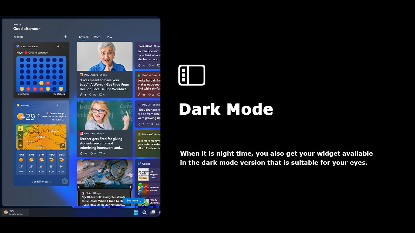 Play against AIPlay with 2nd player Support for Light and Dark ModeSupport for Windows 11 widget