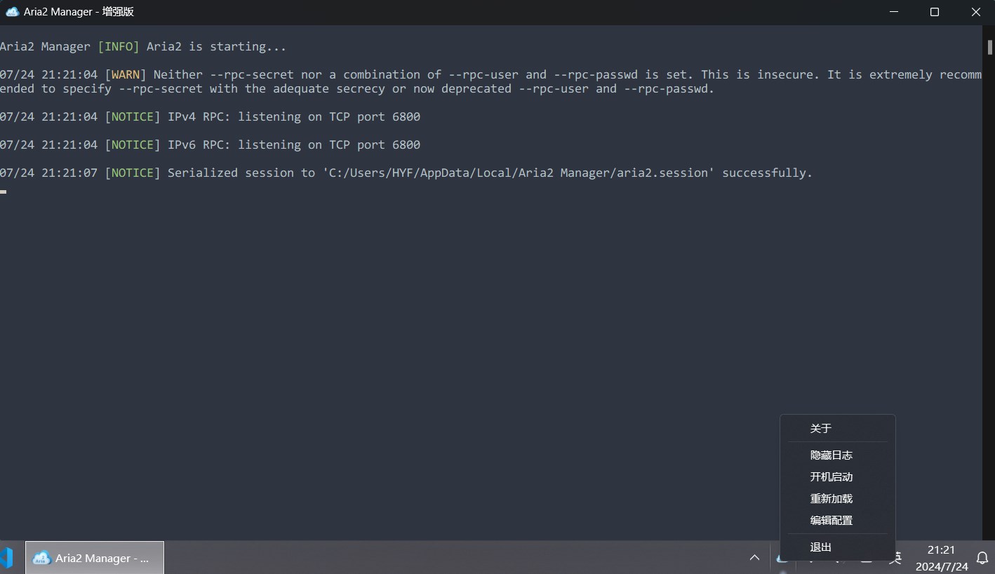 1. Run Aria2 Manager, click tray icon to launch task management UI (Ctrl + Alt + X)