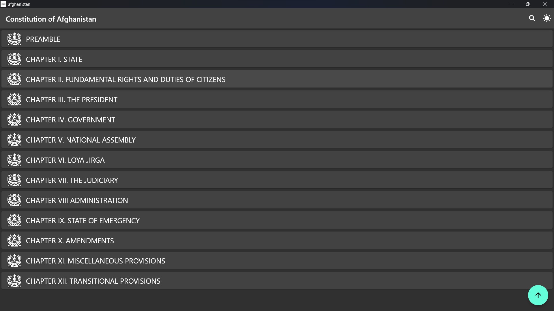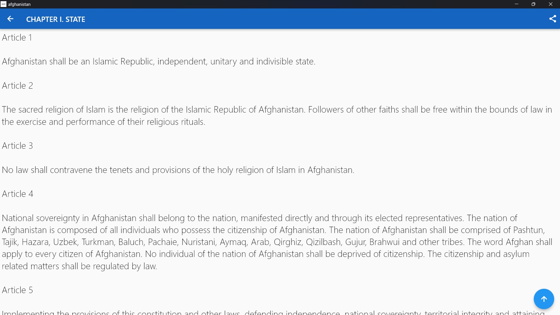 This application contains the Constitution of the Islamic Republic of Afghanistan in English