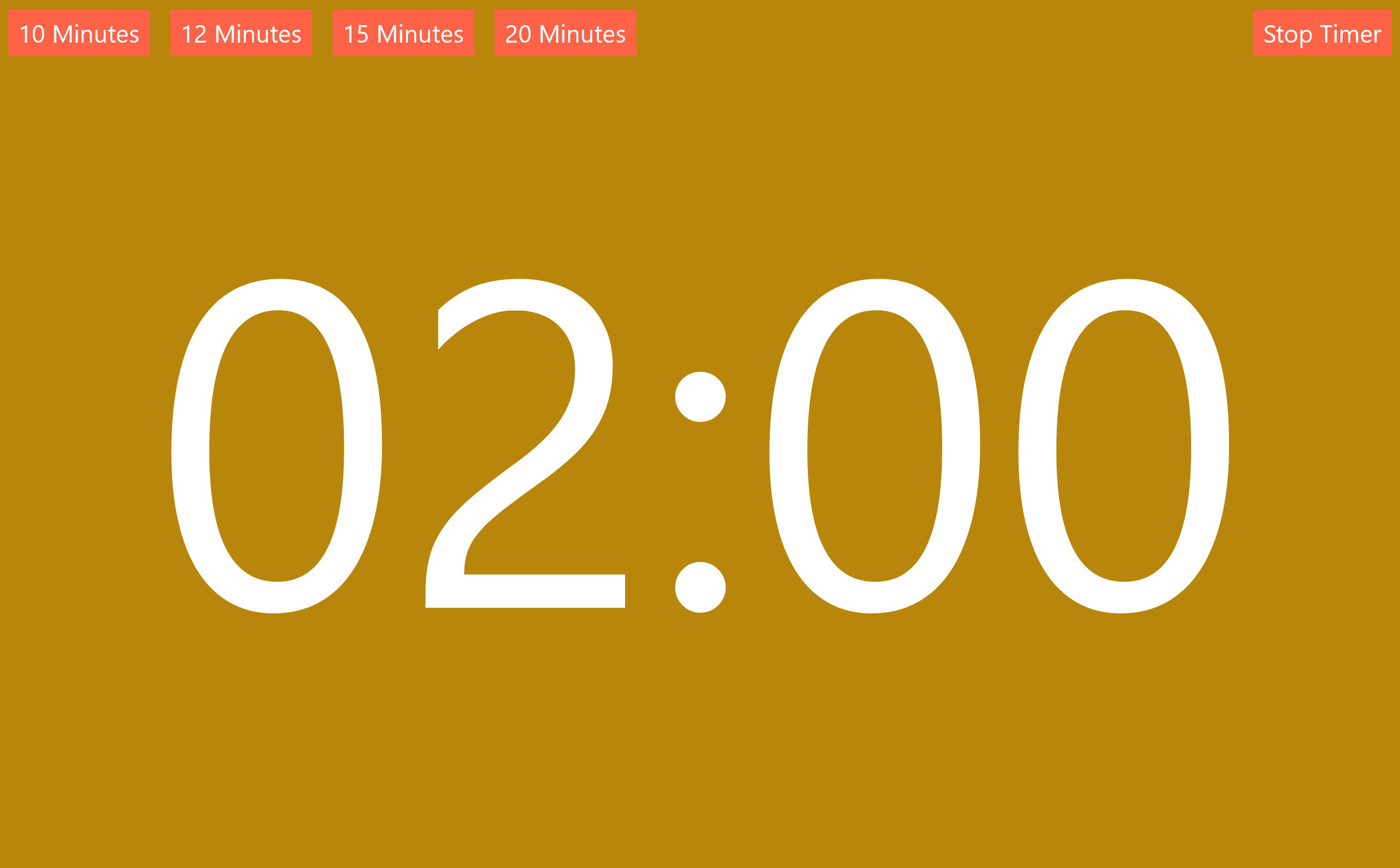 The timer gives options of 10, 12, 15, and 20 minutes.
