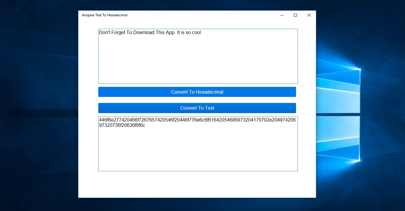 Ampare Text To Hexadecimal is Simple Application To Convert Text To Hexadecimal and Vice Versa.