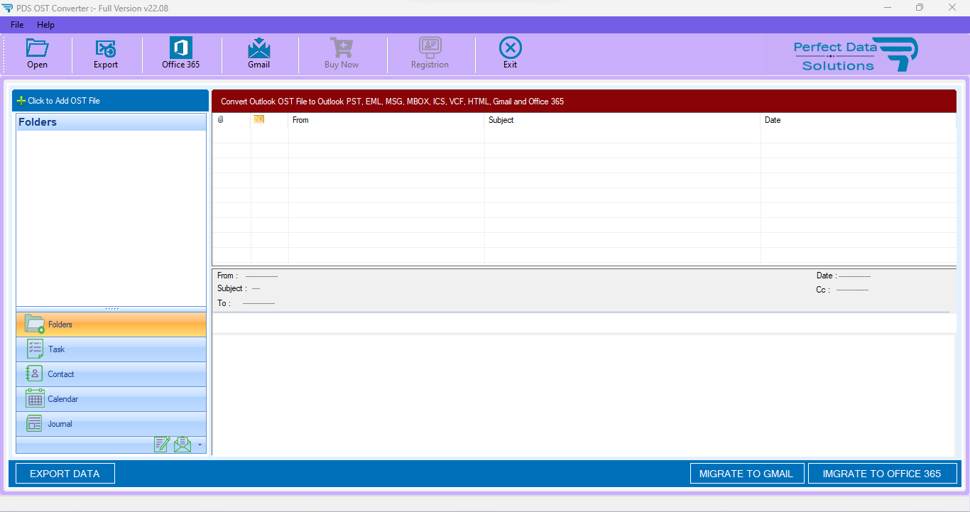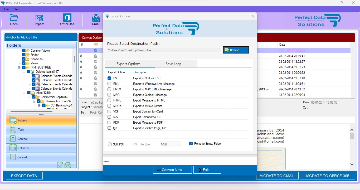 PDS OST to PST Converter is convert Exchange Outlook OST Files to Outlook PST, EML, MSG, MBOX and Migrate into Gmail & Office365 Email Account. PDS OST to PST Converter software convert emails from MS Exchange OST to Outlook PST file. OST Recovery Tool also Convert OST data to PST, Office 365, EML, MSG, MBOX, HTML and PDF.