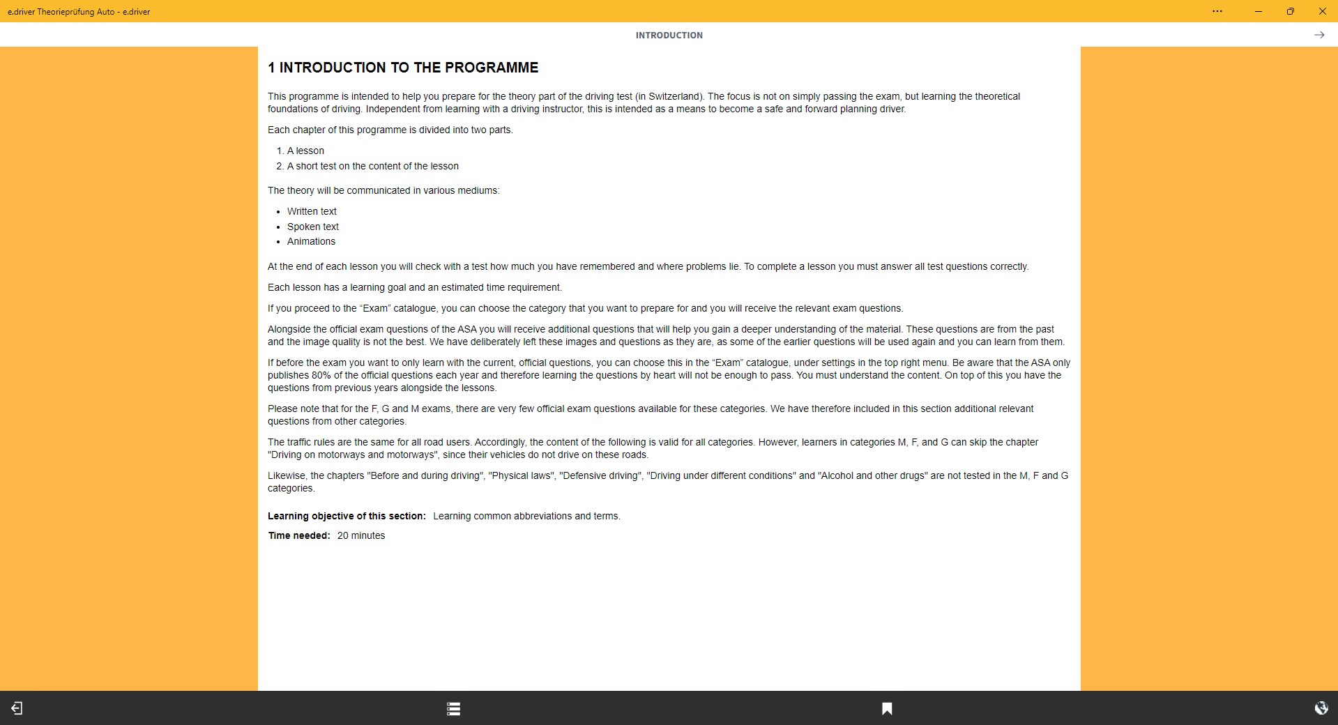 The driving theory test can be enhanced with a separately available eBook, as well as an audio book. e.driver is therefore an always present virtual driving instructor on your way to getting your Swiss driver’s license.
