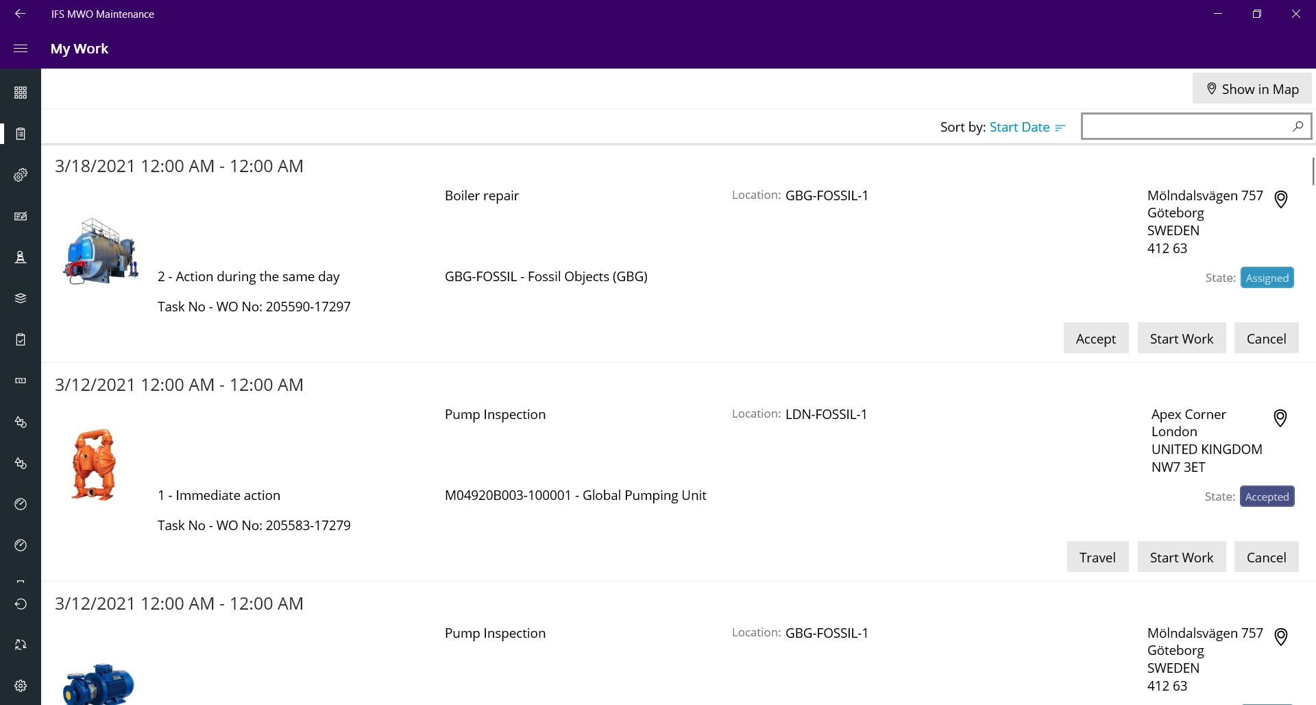 IFS Cloud Mobile Work Order for Maintenance is ideal for plant engineers and field technicians who work where connectivity is sporadic or not available by collecting the users input, then syncing the data on a schedule, or when a connection becomes available. With robust access to equipment information, IFS Cloud Mobile Work Order for Maintenance guides technicians through the work process allowing them to perform assigned or pooled tasks and gives them the ability to create new tasks that can be immediately reported against or sent to the back office for later work.