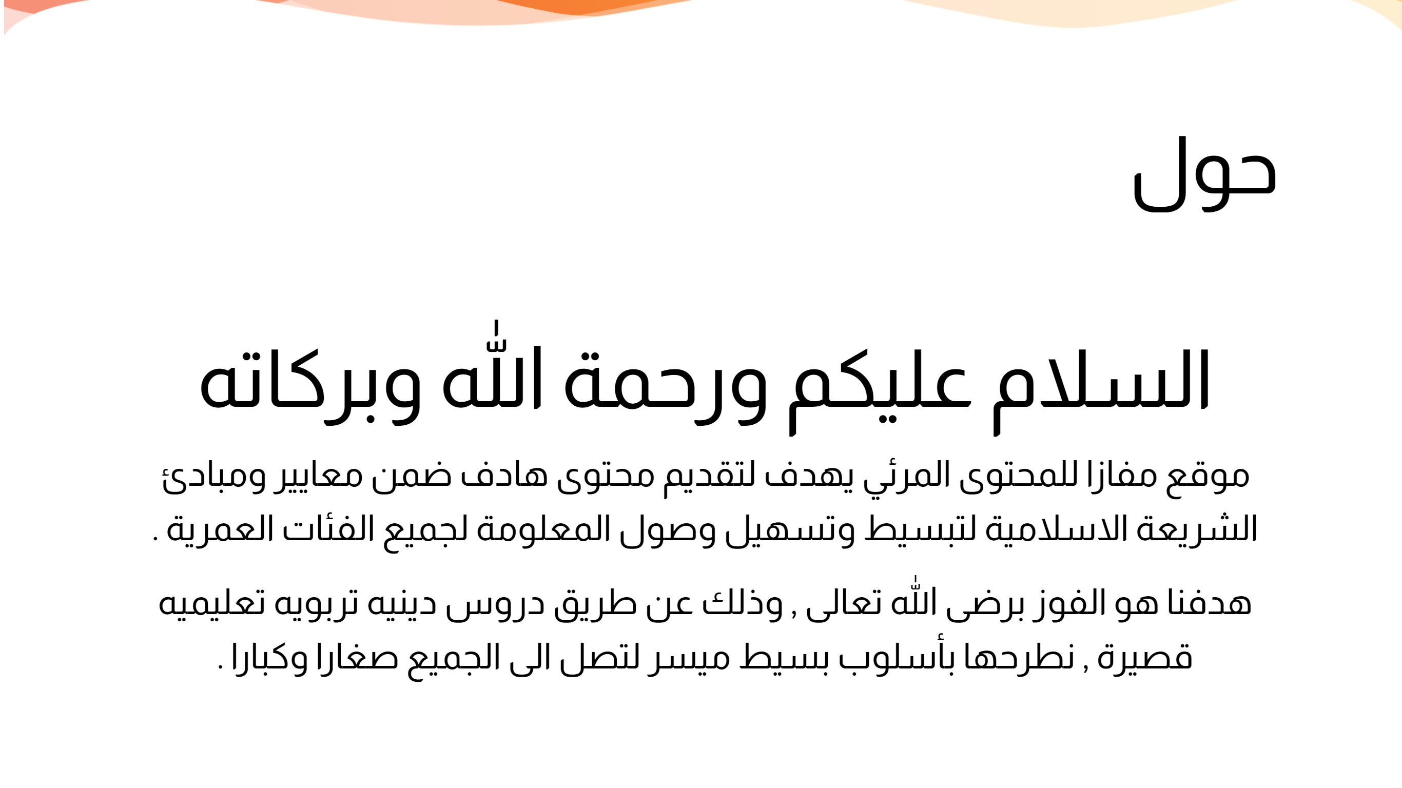 موقع مفازا للمحتوى المرئي يهدف لتقديم محتوى هادف ضمن معايير ومبادئ الشريعة الاسلامية لتبسيط وتسهيل وصول المعلومة لجميع الفئات العمرية .