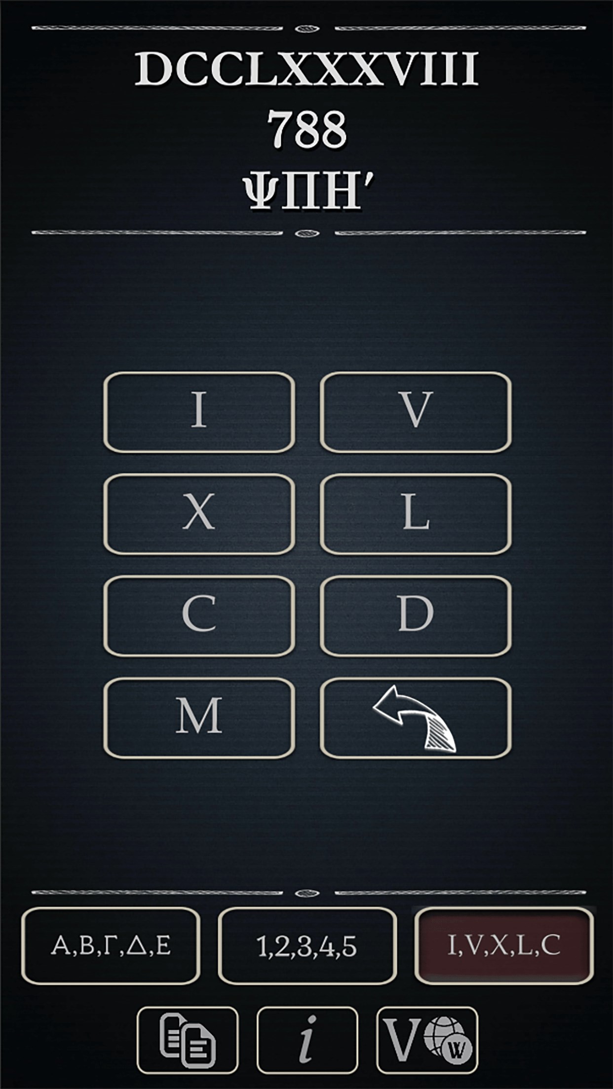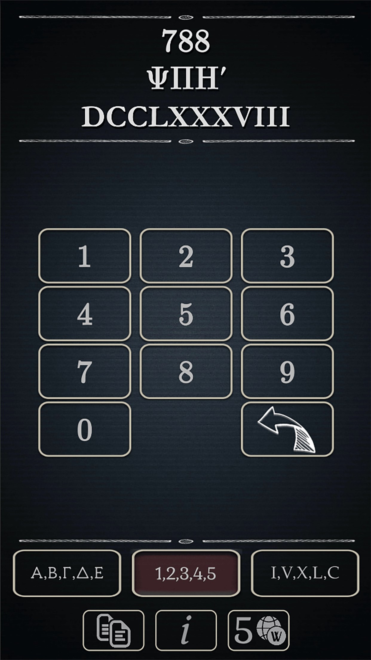 A simple to use tool, for three-way conversion between Arabic (decimal), Latin (Roman) and Greek (Hellenic) numeral systems.