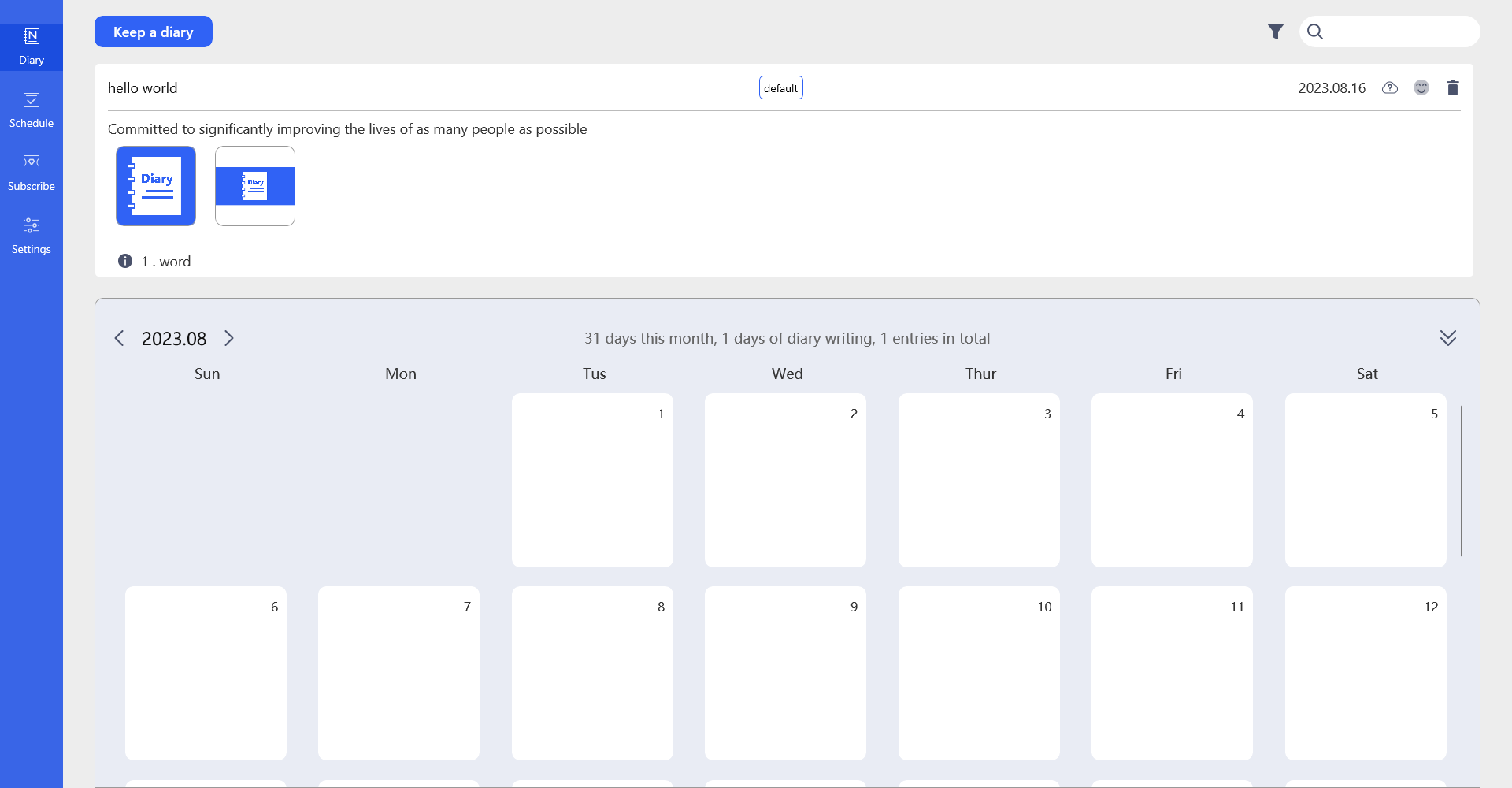 We have incorporated an advanced search function into this application. This function enables you to locate specific diary entries using dedicated keywords or dates. Regardless of the number of entries or how old they might be, you can effortlessly glide to the moments you desire.