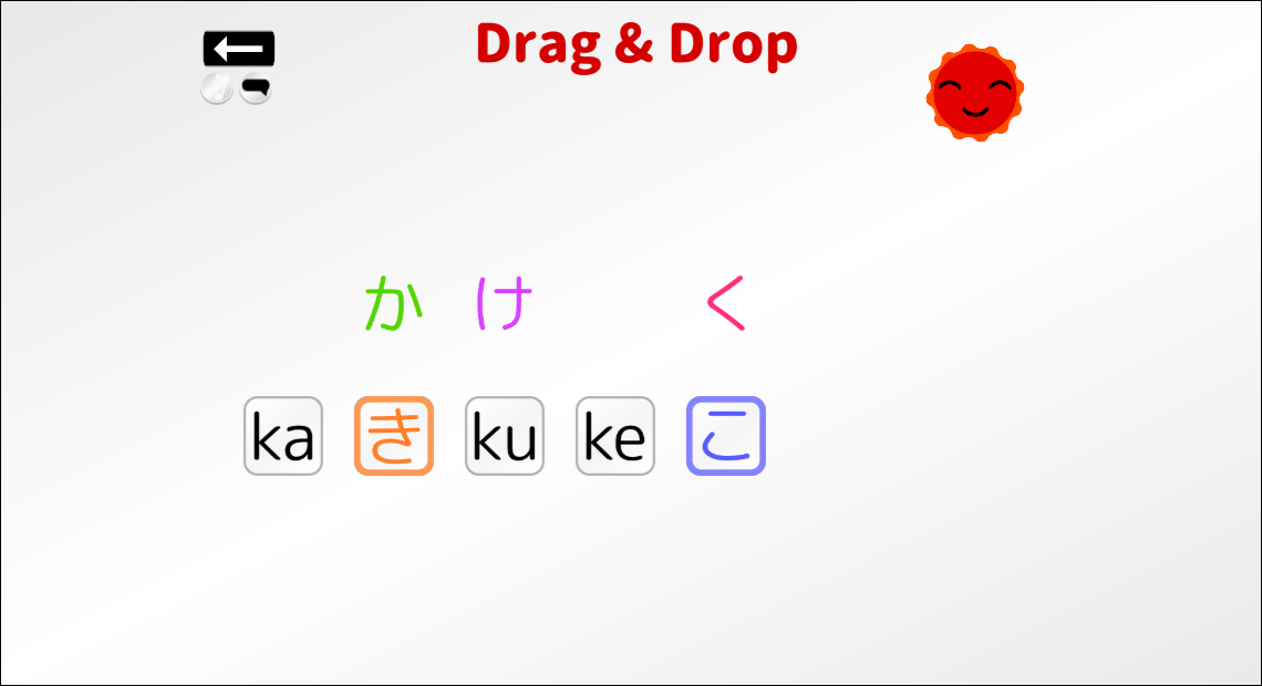 This game teaches you all the characters of the hiragana alphabet, as well as their variations and combinations.