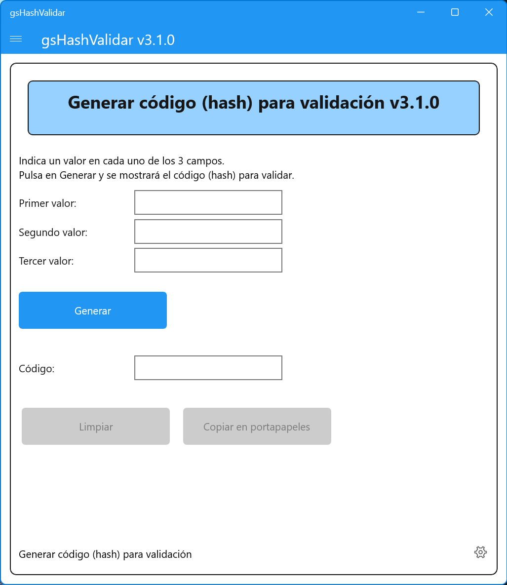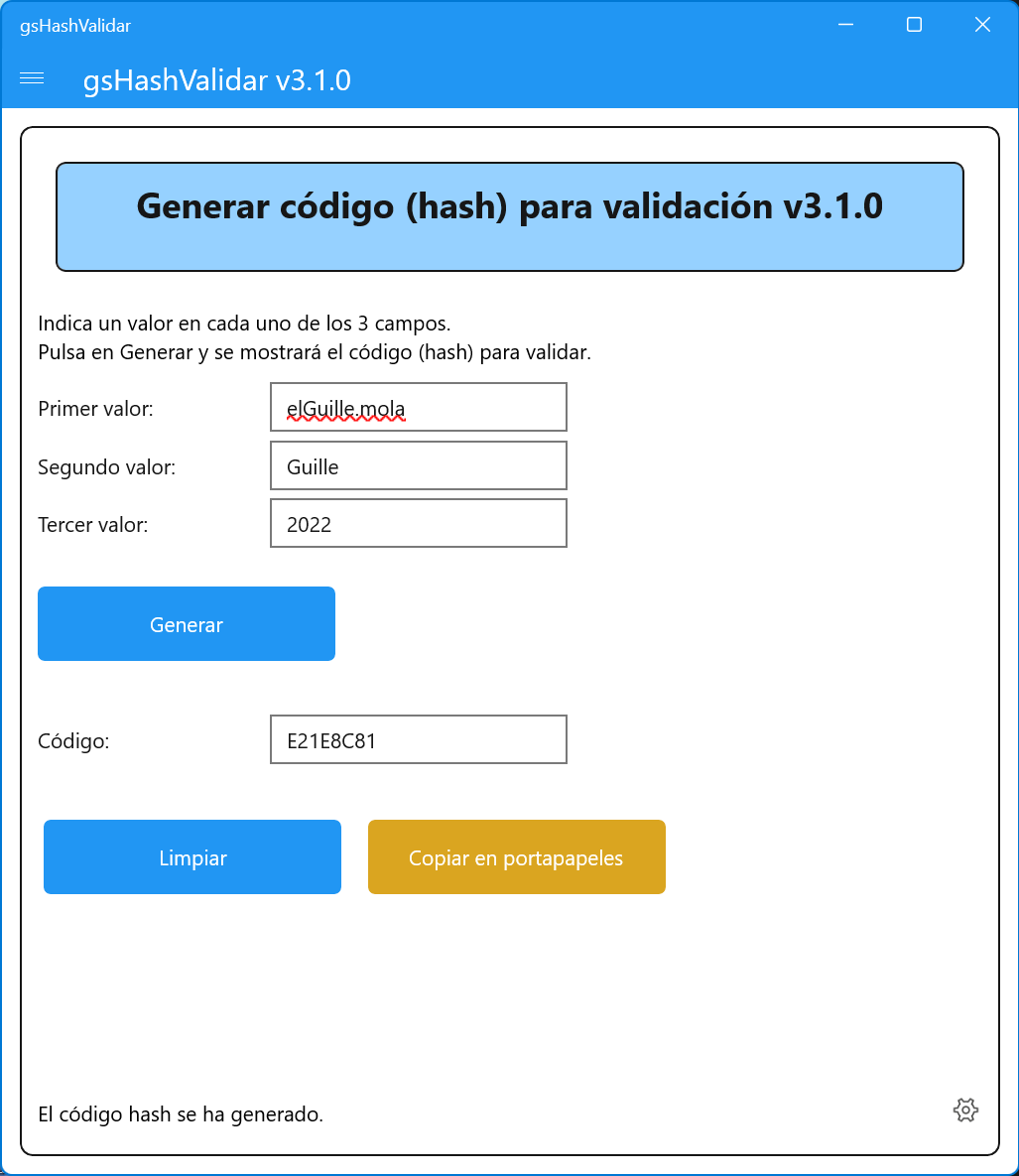 Utility to generate a hash (code) to validate applications.