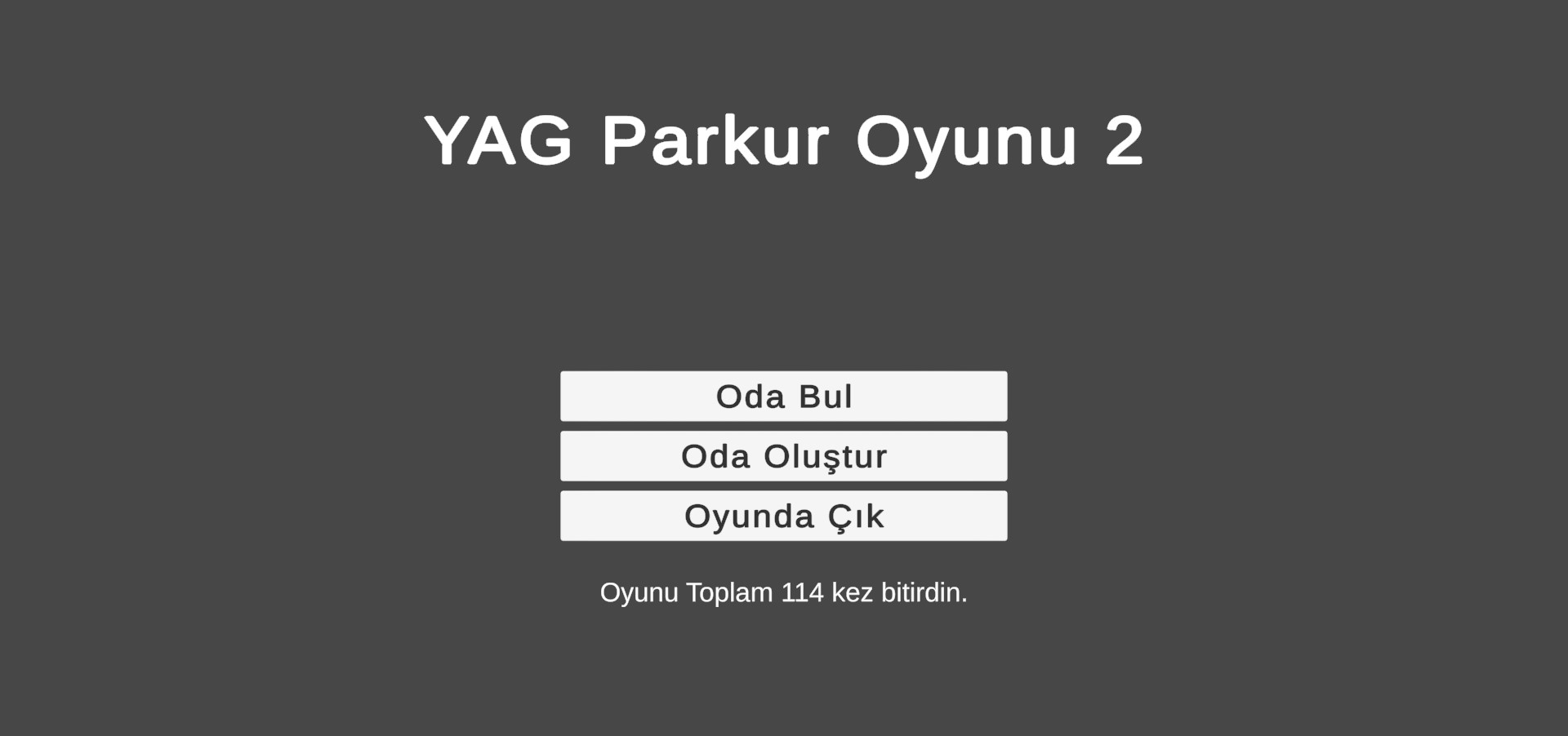 YAG Parkur Oyunu 2 yaptığım basit bir çok oyunculu parkur oyunudur. 1-20 kişiyle oynanabilir. Oyunda şuanda 16 farklı bölüm vardır. Oyunda oda oluşturabilir veya diğer oyuncuların oluşturduğu odalara katılabilirsiniz. Oyun şuanda kısa gibi gözükse de sonraki güncellemelerde daha fazla bölüm eklenecek.