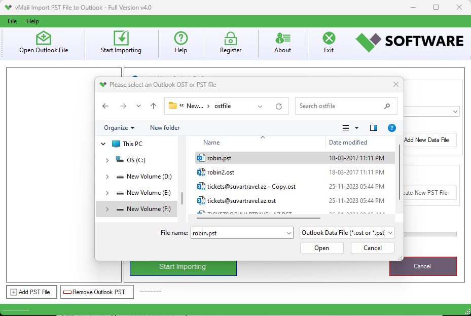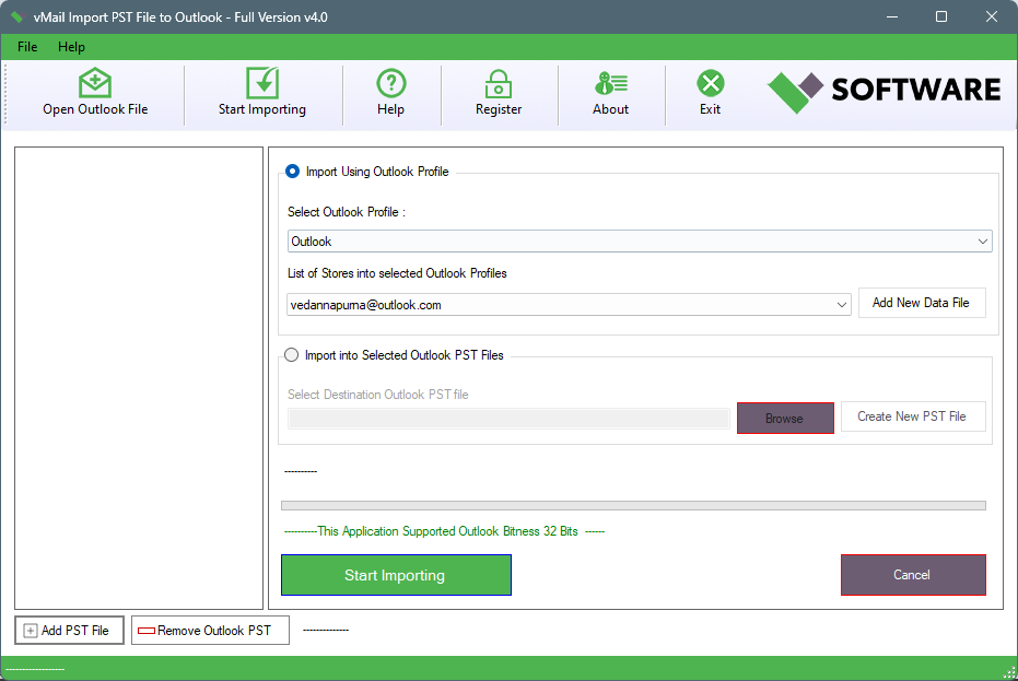 vMail Outlook PST File Importer from VSOFTWARE is an PST Importer Tool form Microsoft Outlook backup Personal Storage Files (PST) and Outlook OST. vMail Outlook PST File Importer Tool can quickly and safely scan inaccessible outlook PST file, corrupt or damaged PST files and Easy to Import Outlook PST File Folder Inbox, Outbox, Sent, Drafts email items, Contact Lists, Calendar entries, To-do-lists, Journals, Deleted Items, etc. This vMail Outlook PST File Importer Tool is a better alternative options for (Inbox Repair Tool) from Microsoft Office because this tool is capable of fix severe corruption issues from Outlook PST files. vMail Outlook PST File Importer Tool Import Outlook Data from password-protected PST files without losing any data.