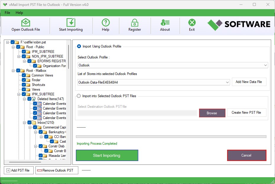 vMail Outlook PST File Importer can also Import Corrupted Outlook OST/PST file into Selected Outlook Profile & Data Store File. User easy to create Outlook Data Store File at Restoration Outlook Conversion Times while maintaining all email meta-data like To, CC, BCC, Subject, Date-Time & email attachments
