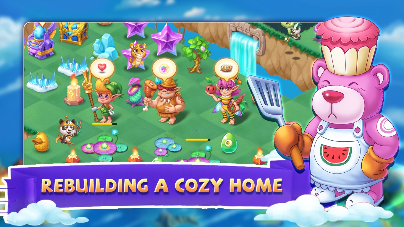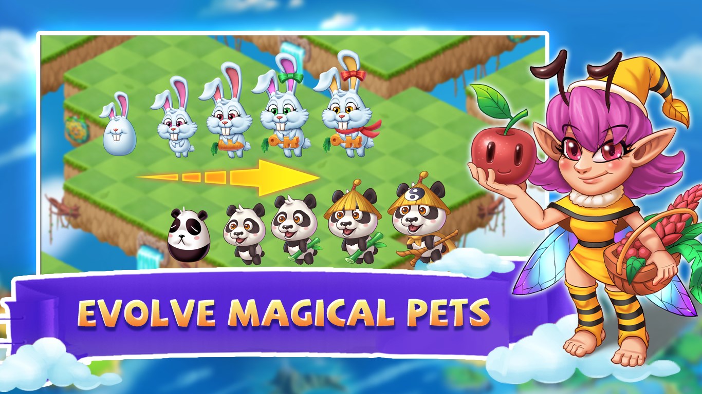 Dozens of magical pets and creatures are waiting for you to collect. Match and merge them, keep leveling up, let them evolve into cute and powerful magical pets, and keep unleashing powerful powers to help you rebuild your dream home!