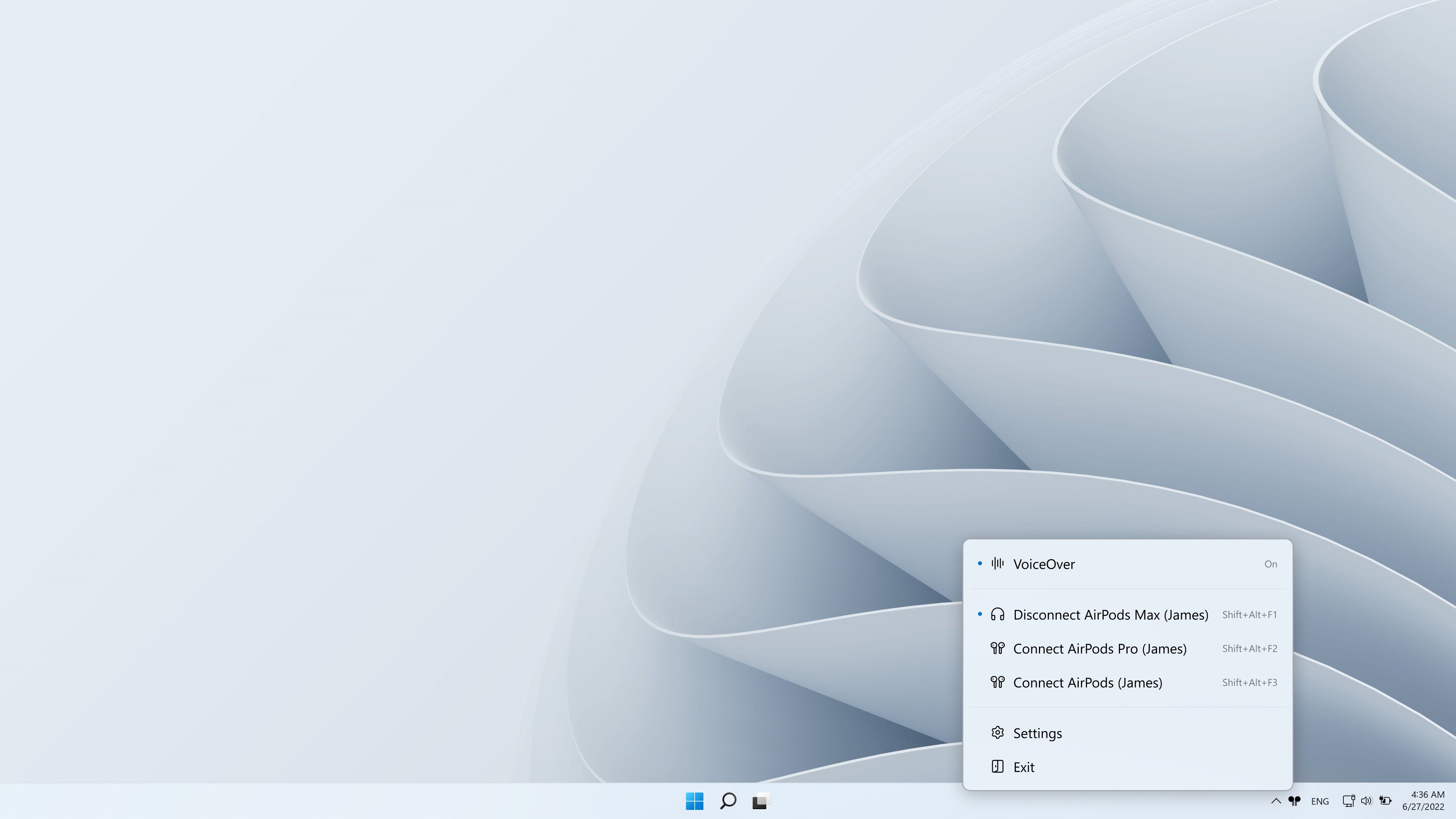 Connect and disconnect headphones from the app interface, tray icon, or hotkey.