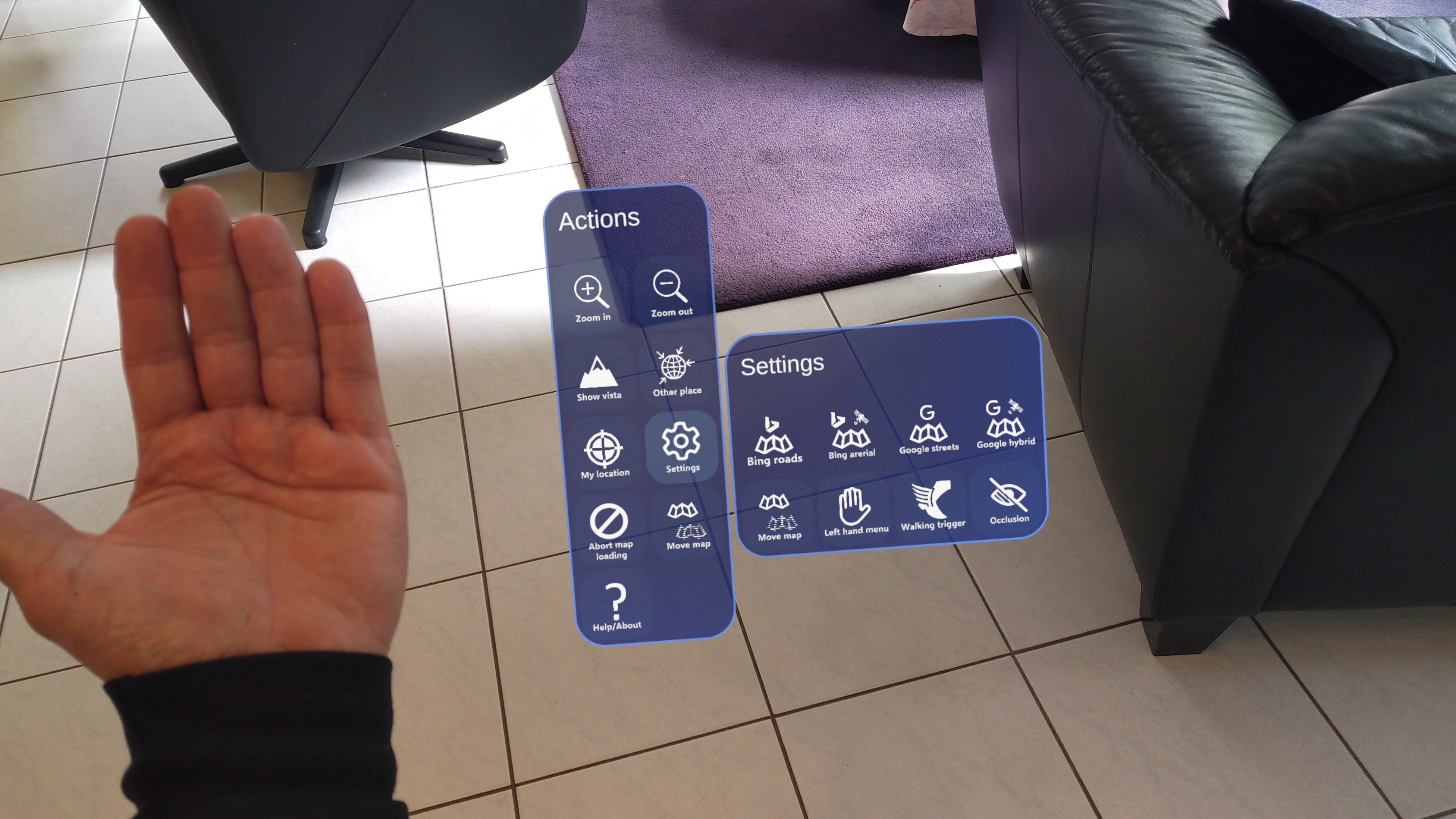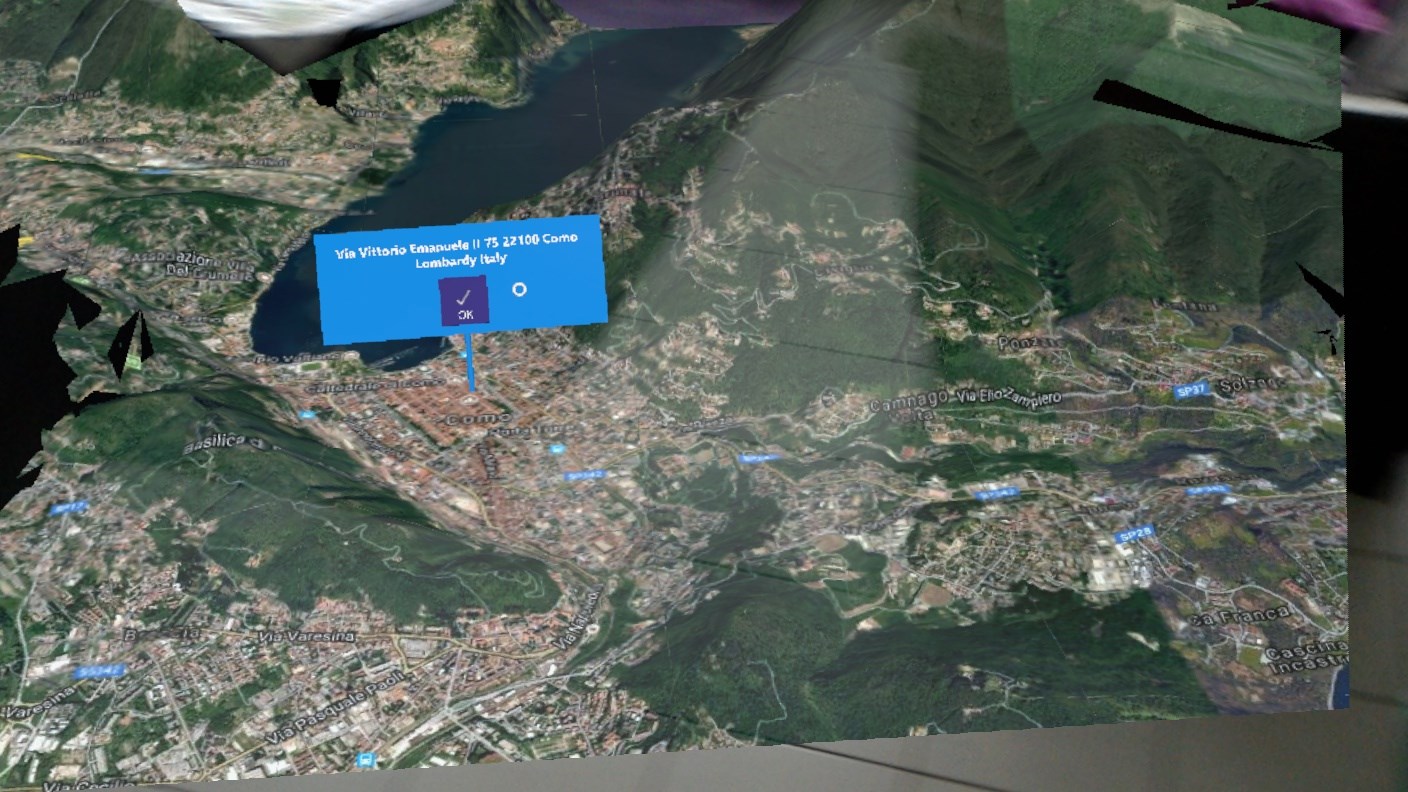 View ANY PLACE in the world in 3D in your HoloLens. Shows Bing and Google Maps in 3D on the floor. You can navigate *by walking over it*. The map will show the adjacent maps you if you walk too far from the center. Zoom in, zoom out, and move to other places by using the hand menu. Also includes a couple of predefined vistas of famous places.