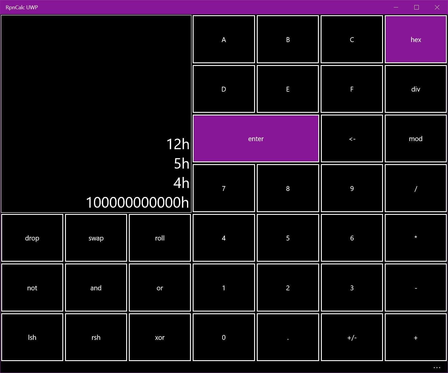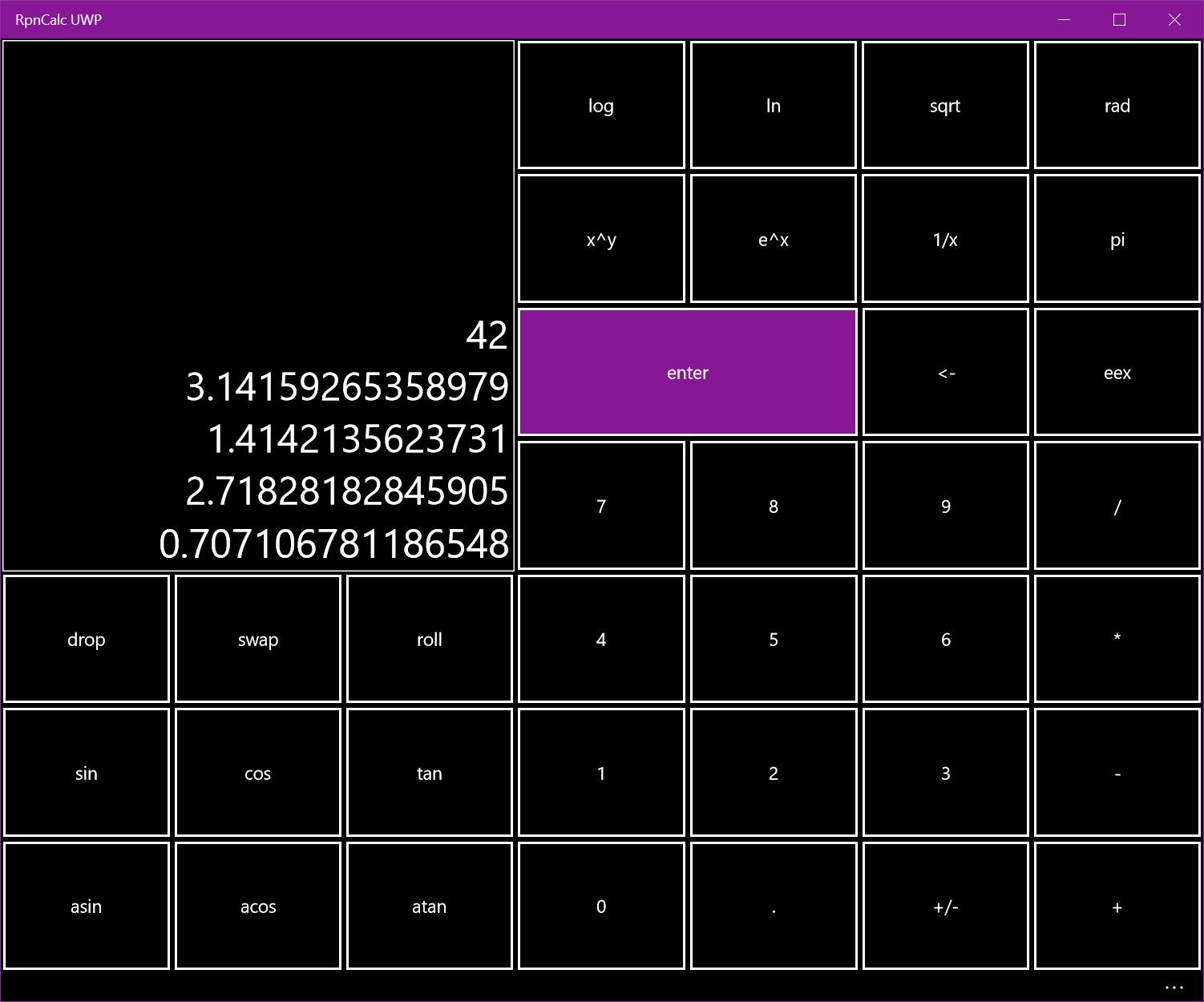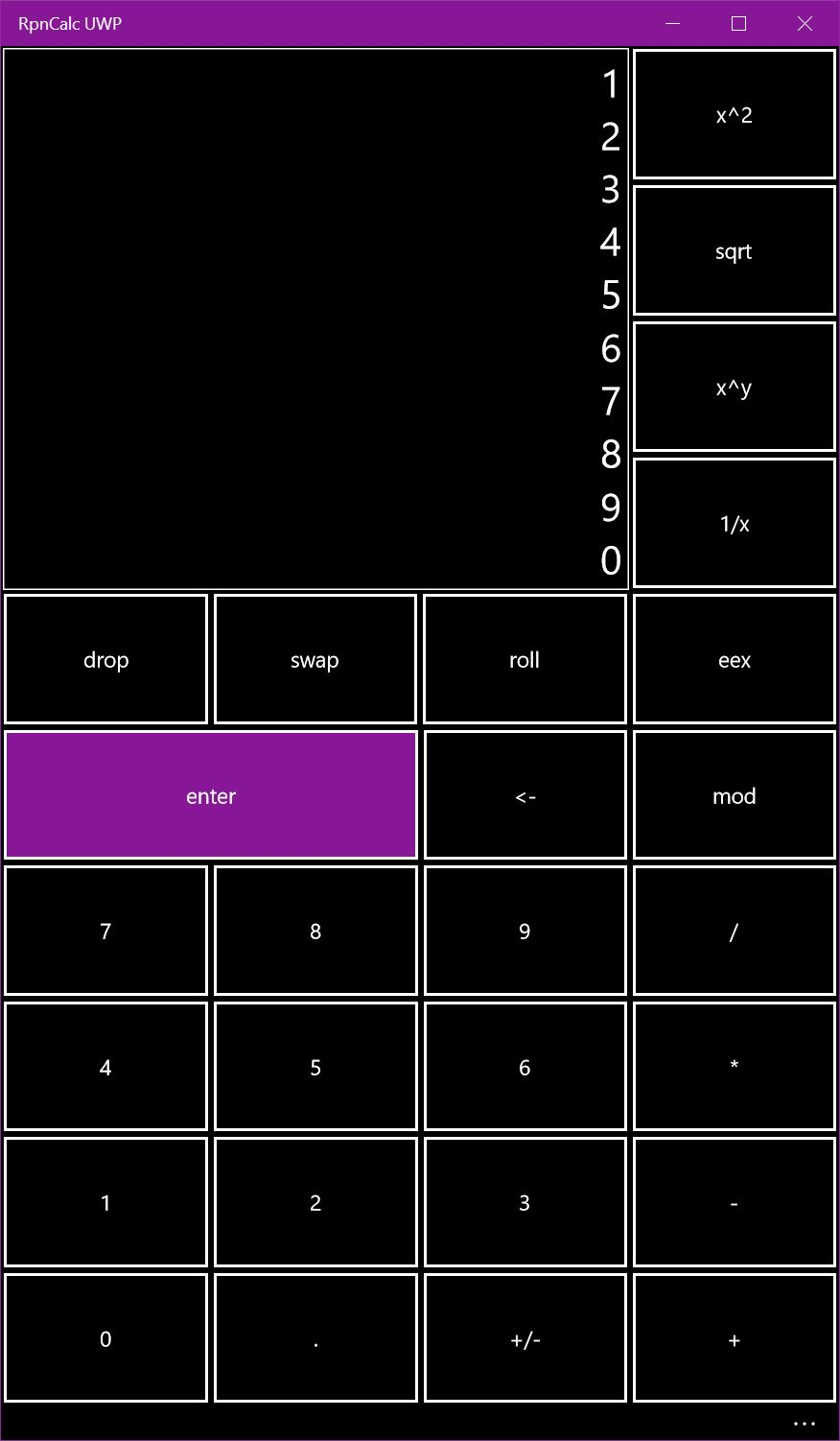 This is the UWP version of my previous RPN Calculator. It has 3 Calculator modes, Simple, Scientific, and Programmer and now works on both Mobile and Windows.