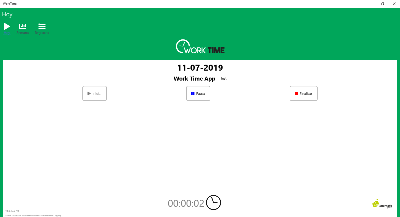 WORK TIME APP es la aplicación de Internalia Group para el registro horario del personal de su empresa.