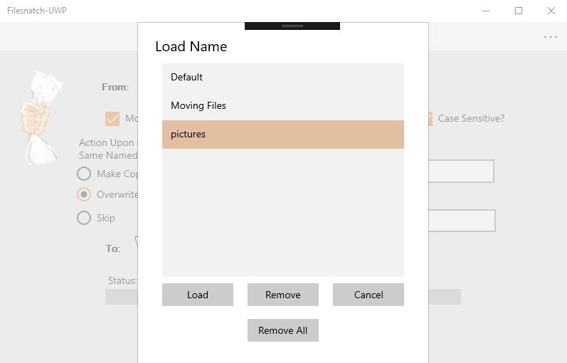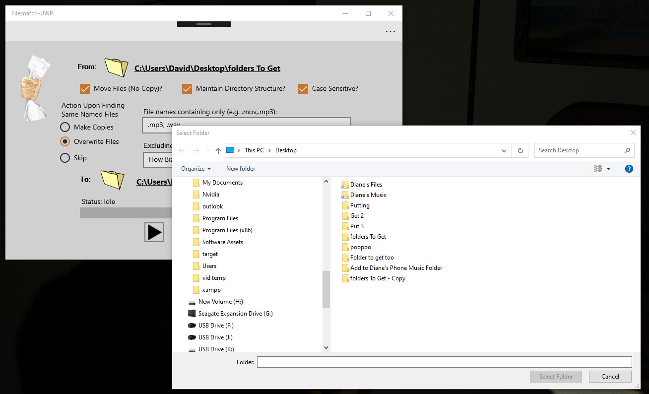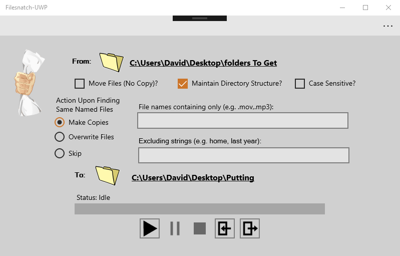 - Copy or move files- Automate the process so you can sit back and do something else- Do the copying of files with case sensitivity or not- Replace files in another directory or keep multiple copies- Maintain the directory structure in the destination folder- Choose to include names of files you want- Exclude the names of files you do not want- Save and load your search criteria- Keep a log file of you last run- Even more!