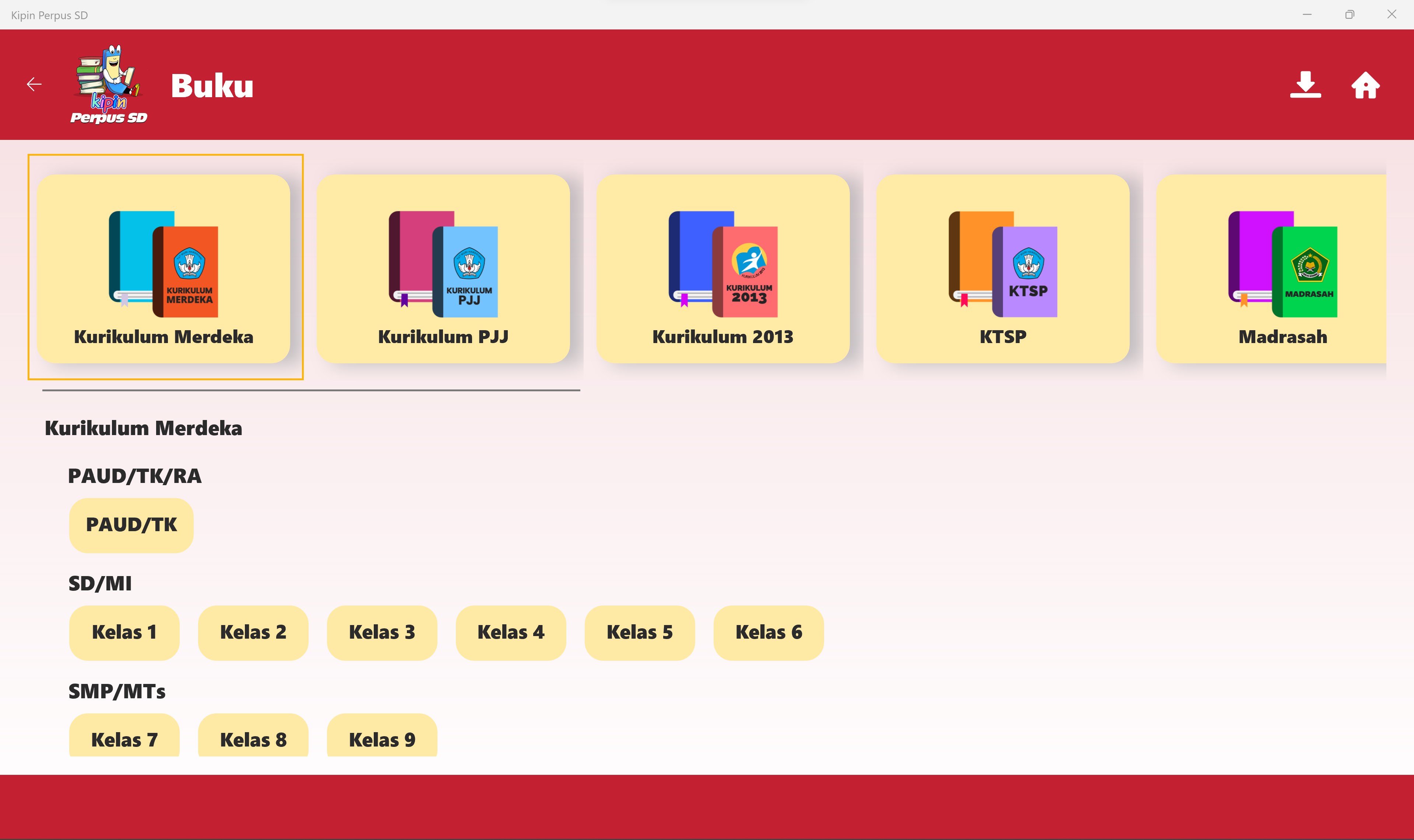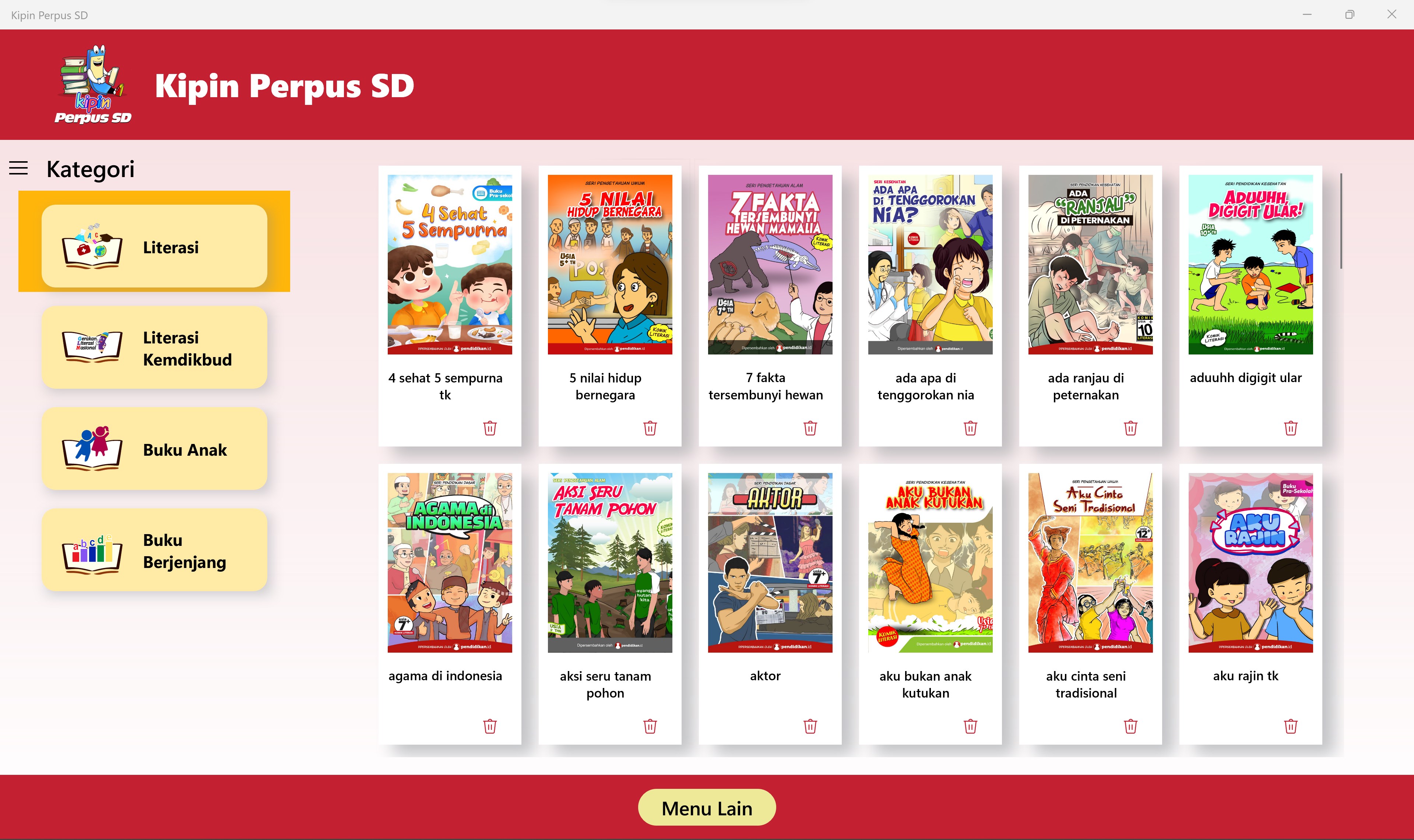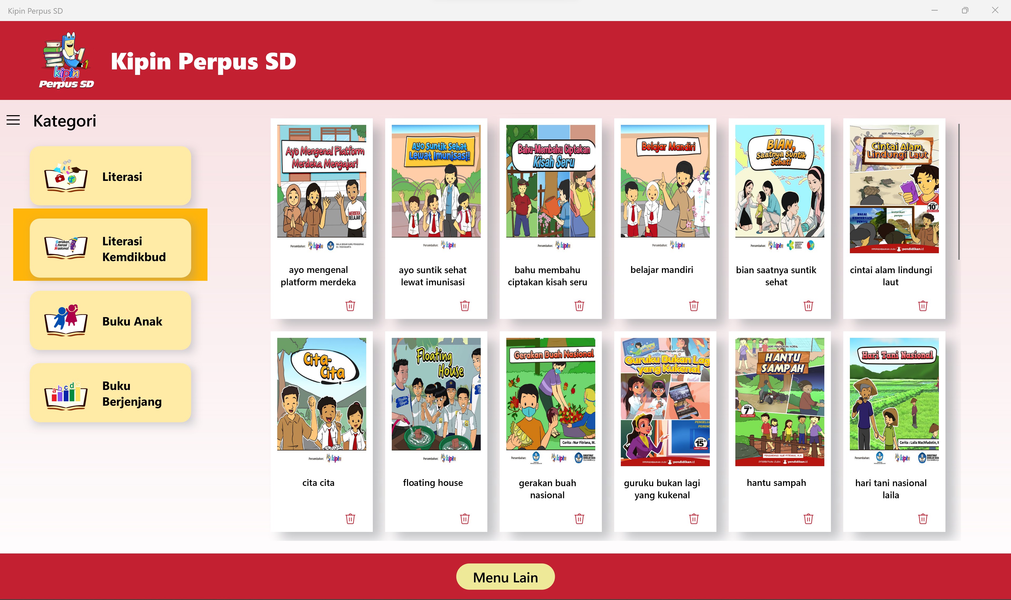 Selain bahan bacaan, Aplikasi Kipin Perpus SD juga dilengkapi dengan sumber-sumber belajar lain seperti buku pelajaran, video edukasi dan latihan soal.