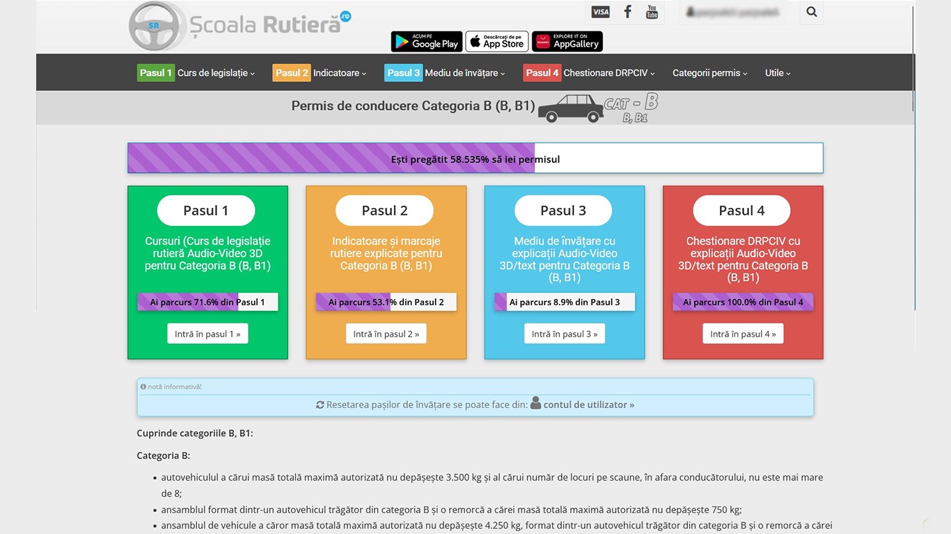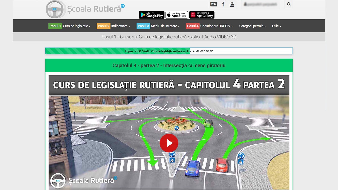 În „Pasul 1 - Legislație și teorie” găsești toată legislația și teoria structurată pe 5 cursuri, cel mai important fiind cursul de legislație rutieră explicat audio-video prin animații 3D.
