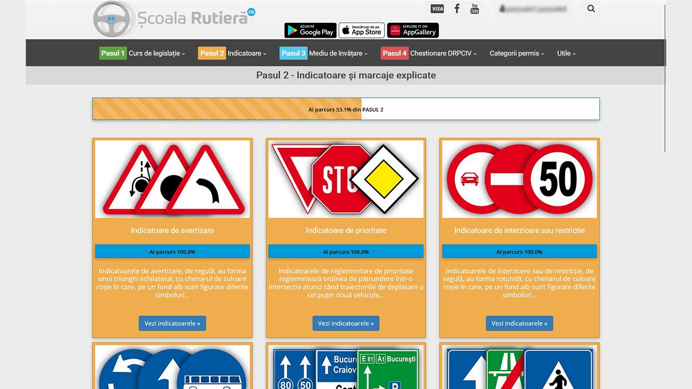 În „Pasul 2 - Indicatoare și marcaje” găsești toate indicatoarele și marcajele rutiere explicate pe înțelesul tuturor.