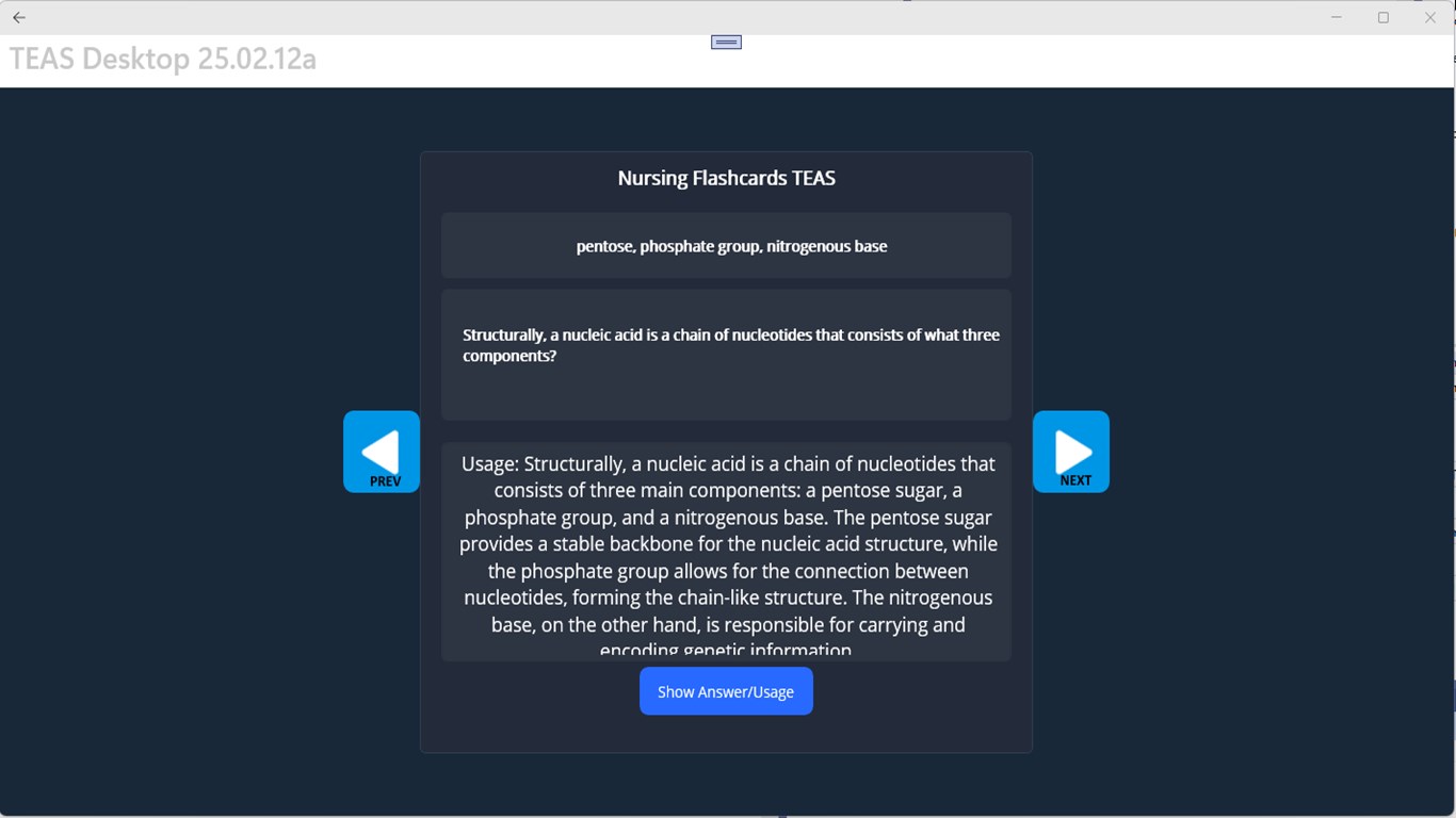 Prepare effectively for the Test of Essential Academic Skills (TEAS) with this comprehensive set of Nursing Flashcards. Designed to help aspiring nurses master key concepts, these flashcards cover essential topics in science, math, English, and reading comprehension. Each card is crafted to enhance recall and understanding, making it the perfect tool for quick reviews, study sessions, or on-the-go learning. Whether you're starting your nursing journey or reinforcing your knowledge, these flashcards are your go-to resource for TEAS exam success!