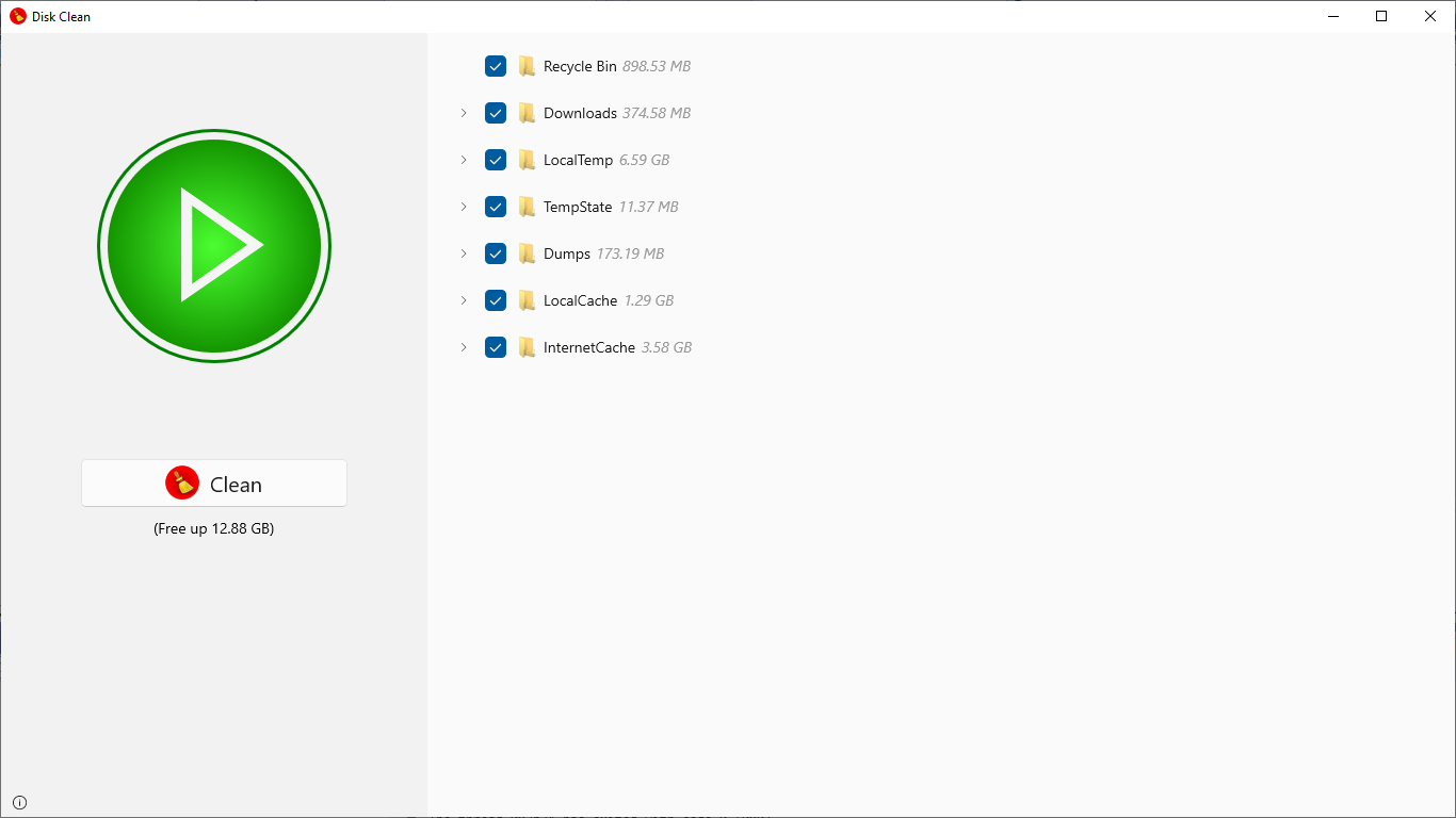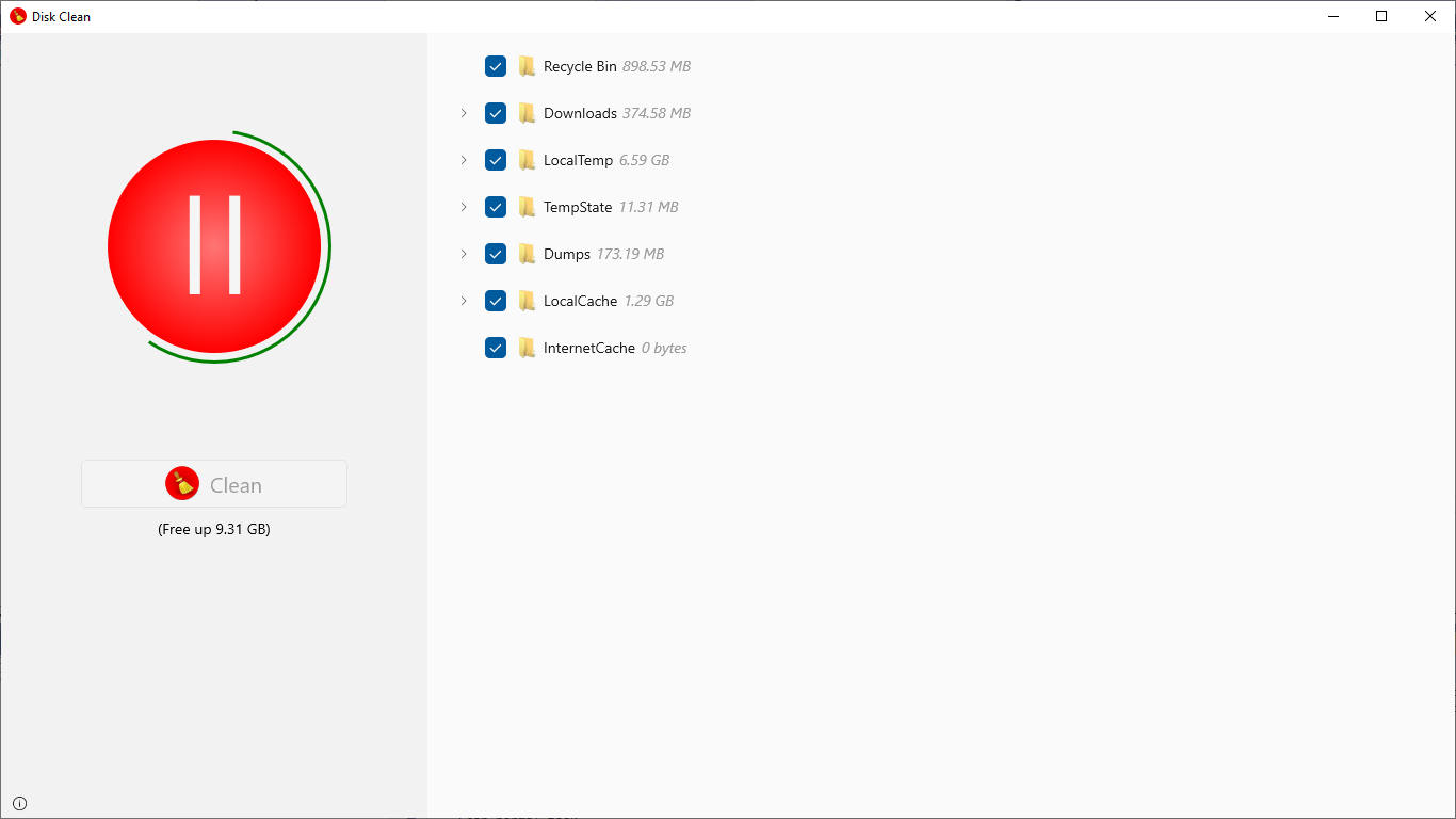 Clean temporary and cache files on your Windows with a single click. Install Disk Clean now to free up your disk.