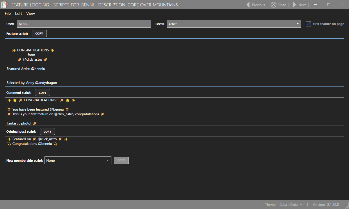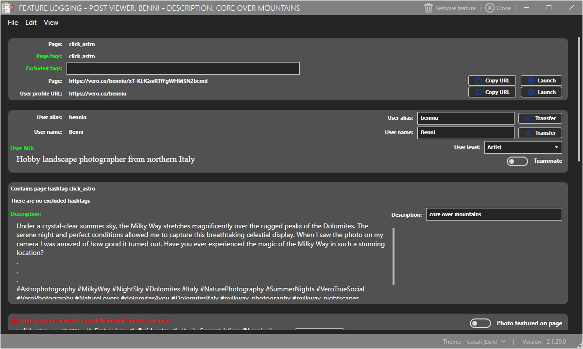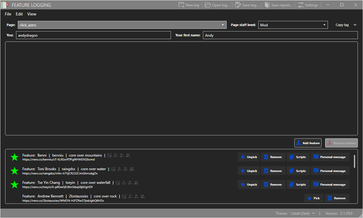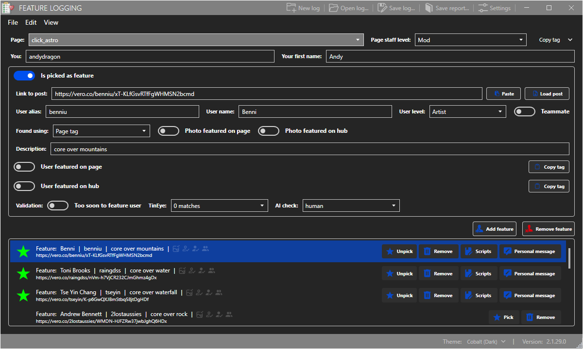 Desktop app for VERO hub and page administrators and moderators to help with logging and creating the scripts for features.