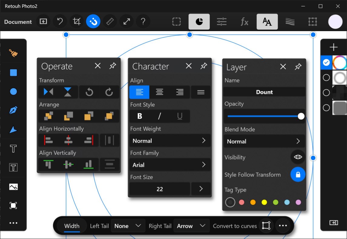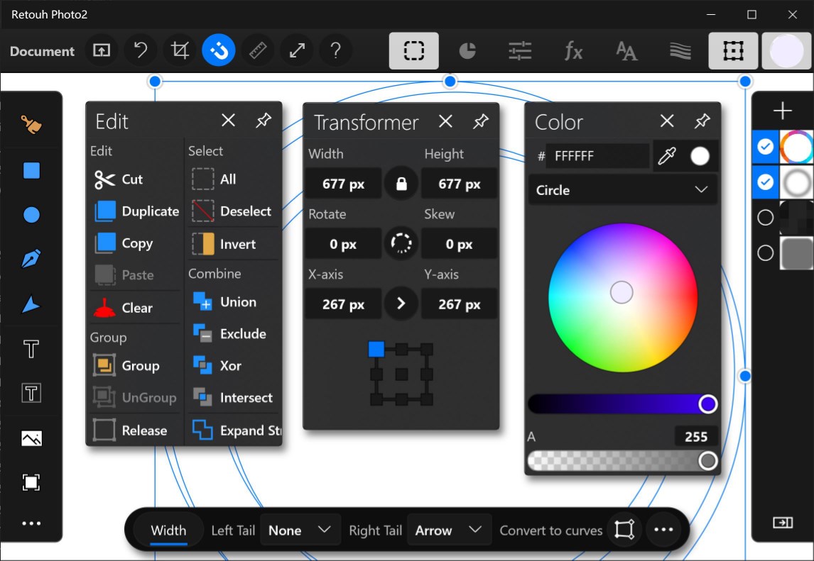 Vector Graphics Editing Tool, you can transform, fill graphics, support adjustment, effect, blend. brush,geometry, layers.