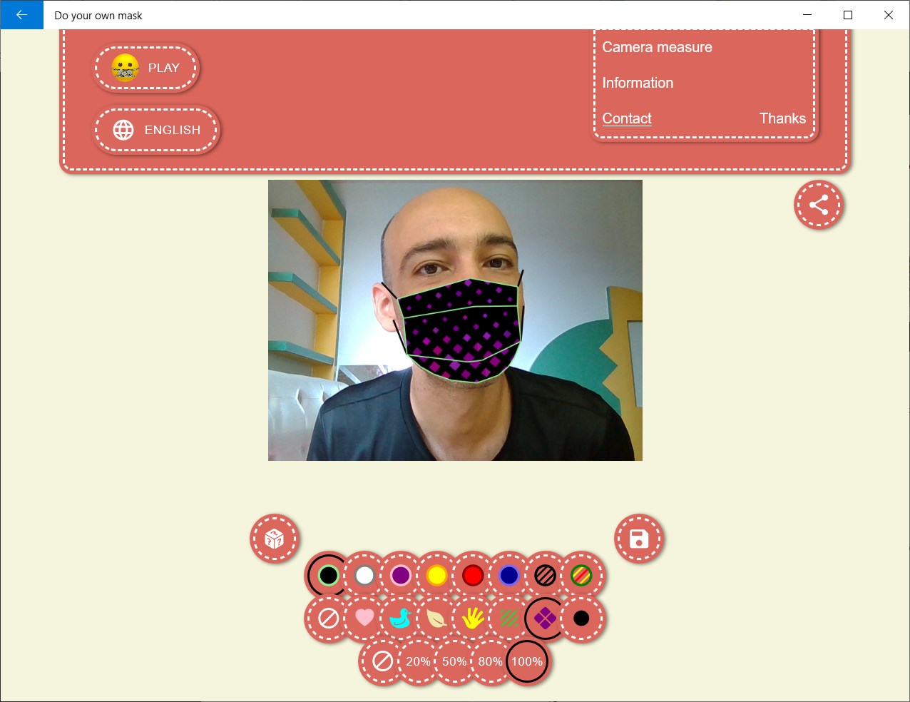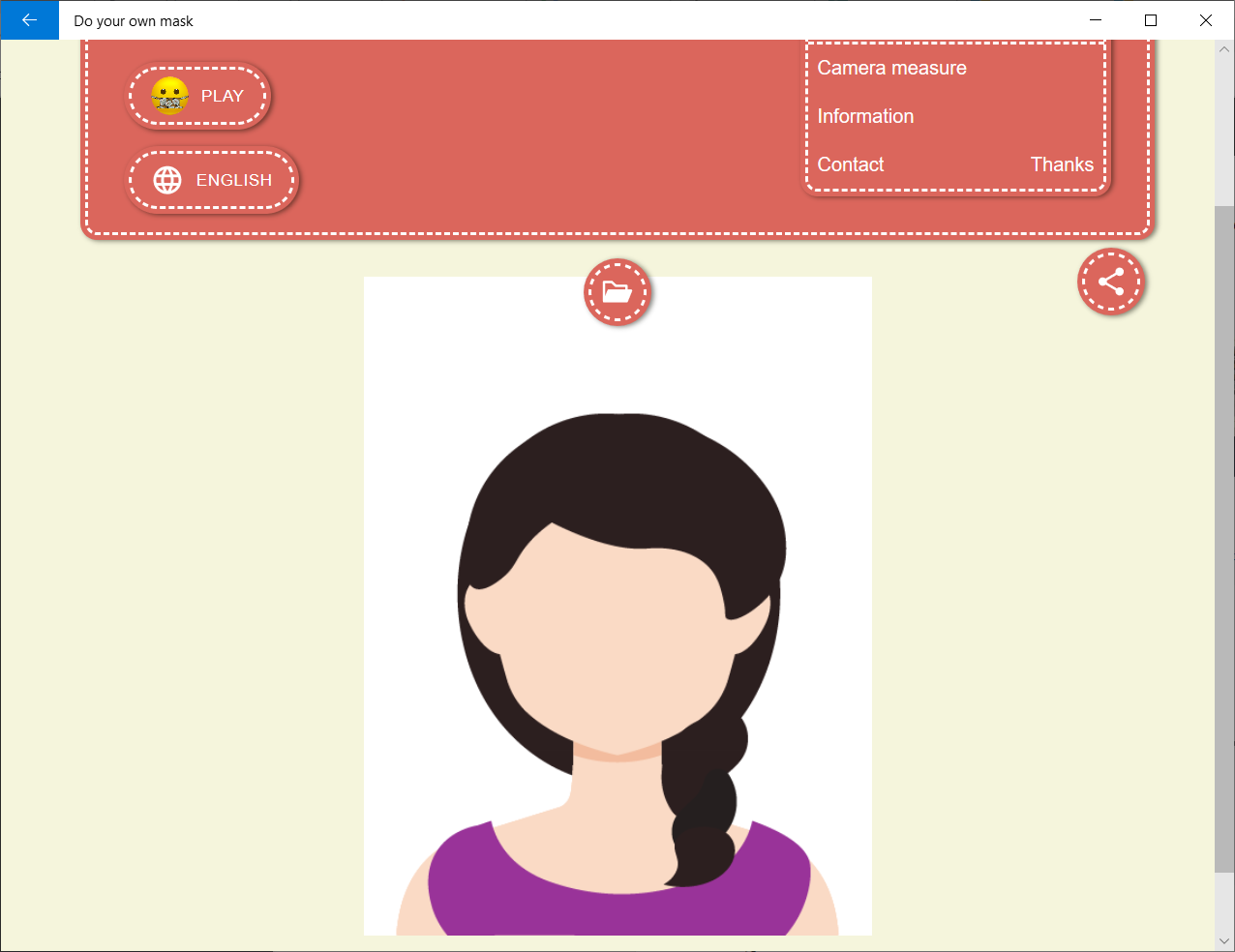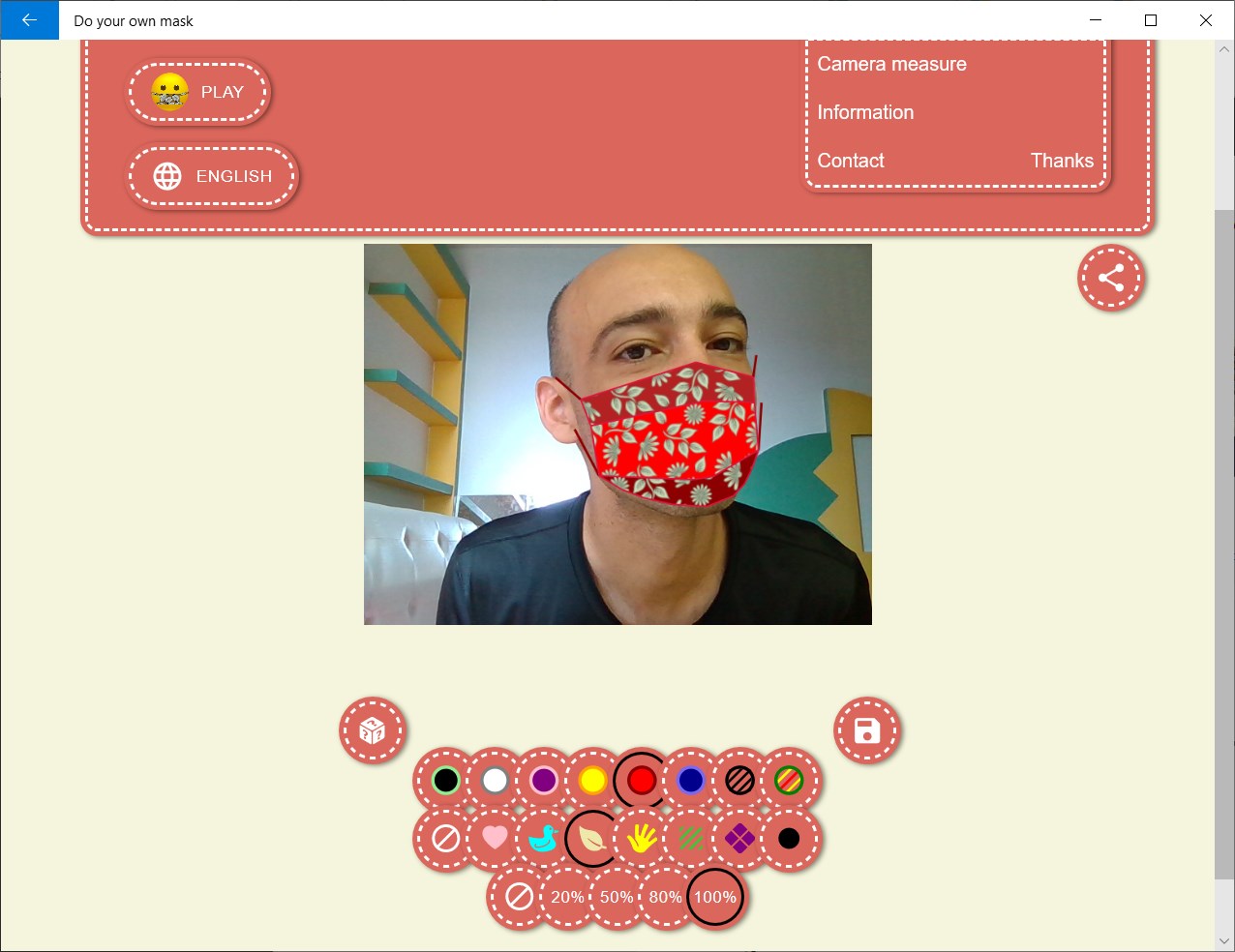 You can use your camera to detect the size and shape of your face using our face detection feature. It will generate a sewing pattern adapted to your face. You can also select and print standard patterns for kids or adults.