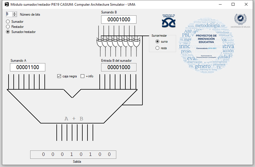 In black box mode, it only does the operations, but it can also visualize the decimal translation of operators and results.