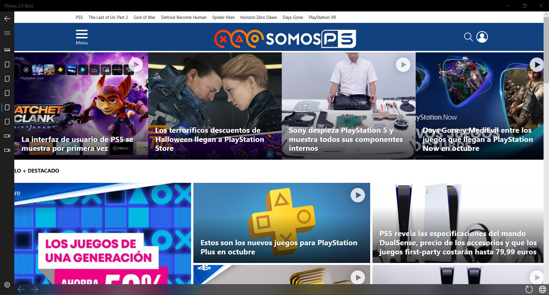 PSFans 2.0 will allow you to be informed at the minute of all the information of video games and PlayStation 5, with updated news, analysis, videos and much more. This application, designed with great attention to detail and following the design guidelines of Windows 10, is the perfect news feed for Sony console players.