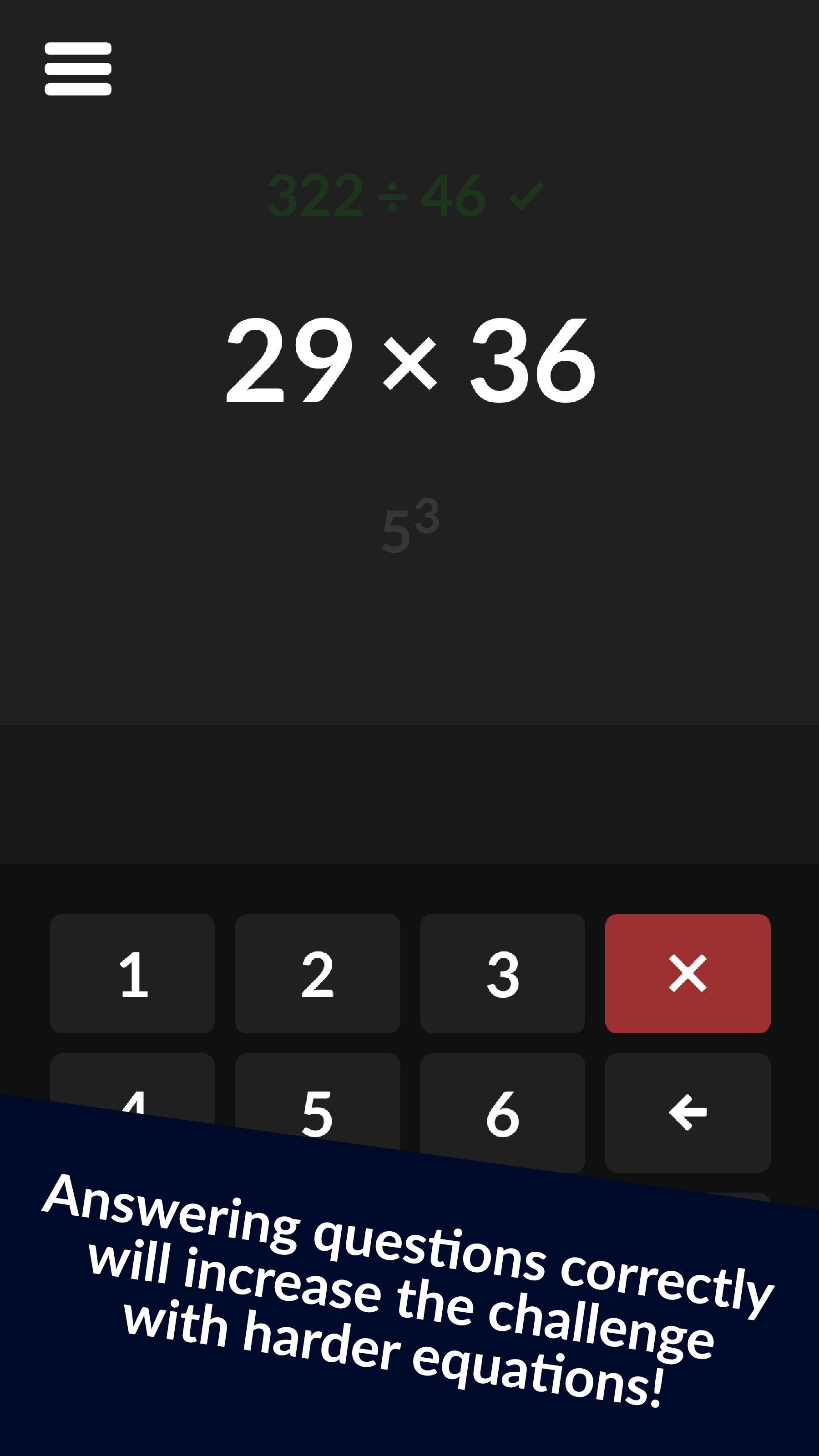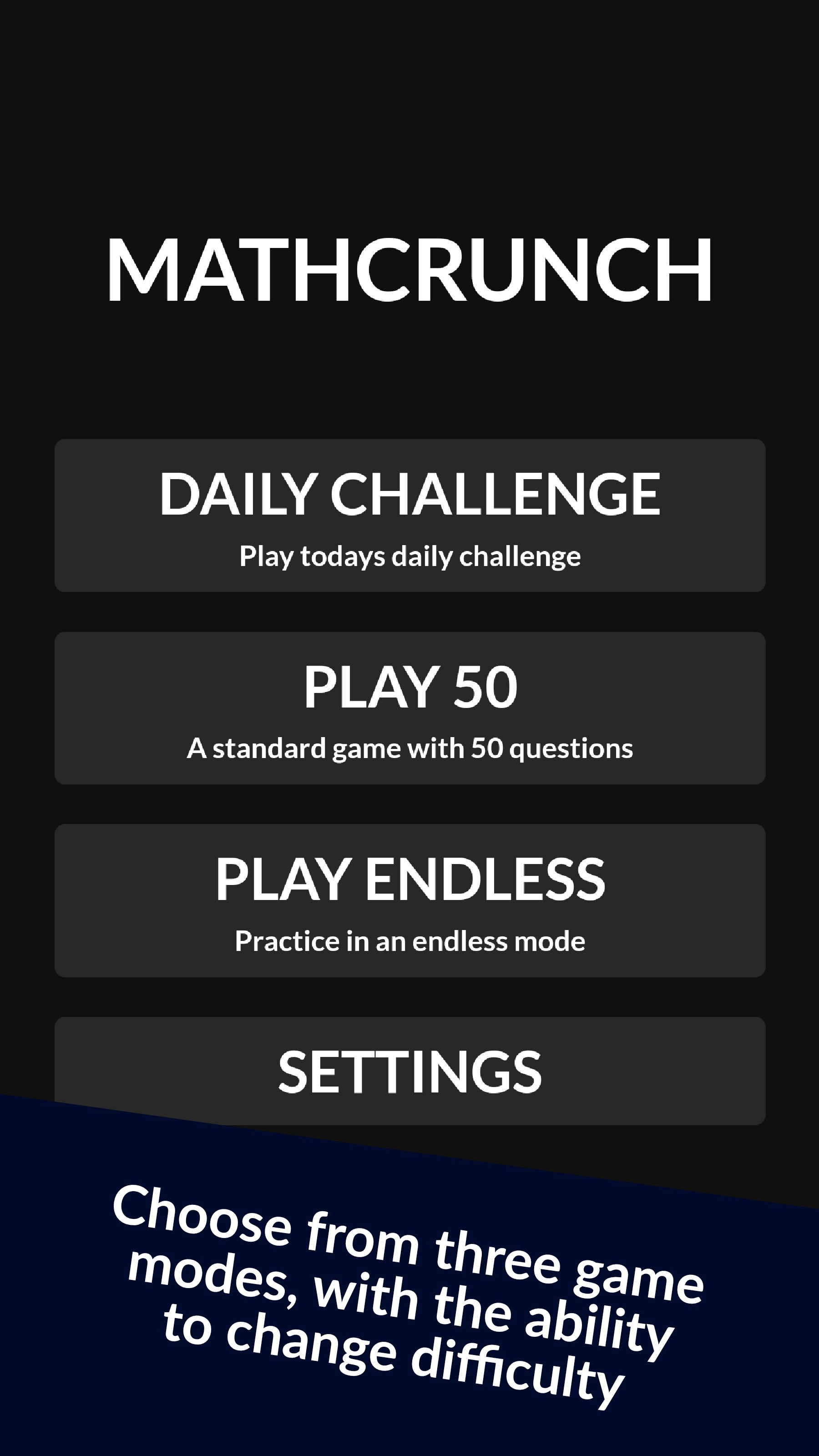 Other game modes include endless, which plays similarly to standard but has no set limit on the amount of equations, allowing you to practice without any pressure. Finally, Daily offers a challenge which is predetermined every day and allows you to compete with friends to see who can get the best score. This game mode will not acknowledge any changes to difficulty in settings, ensuring that the same questions are given to all players.