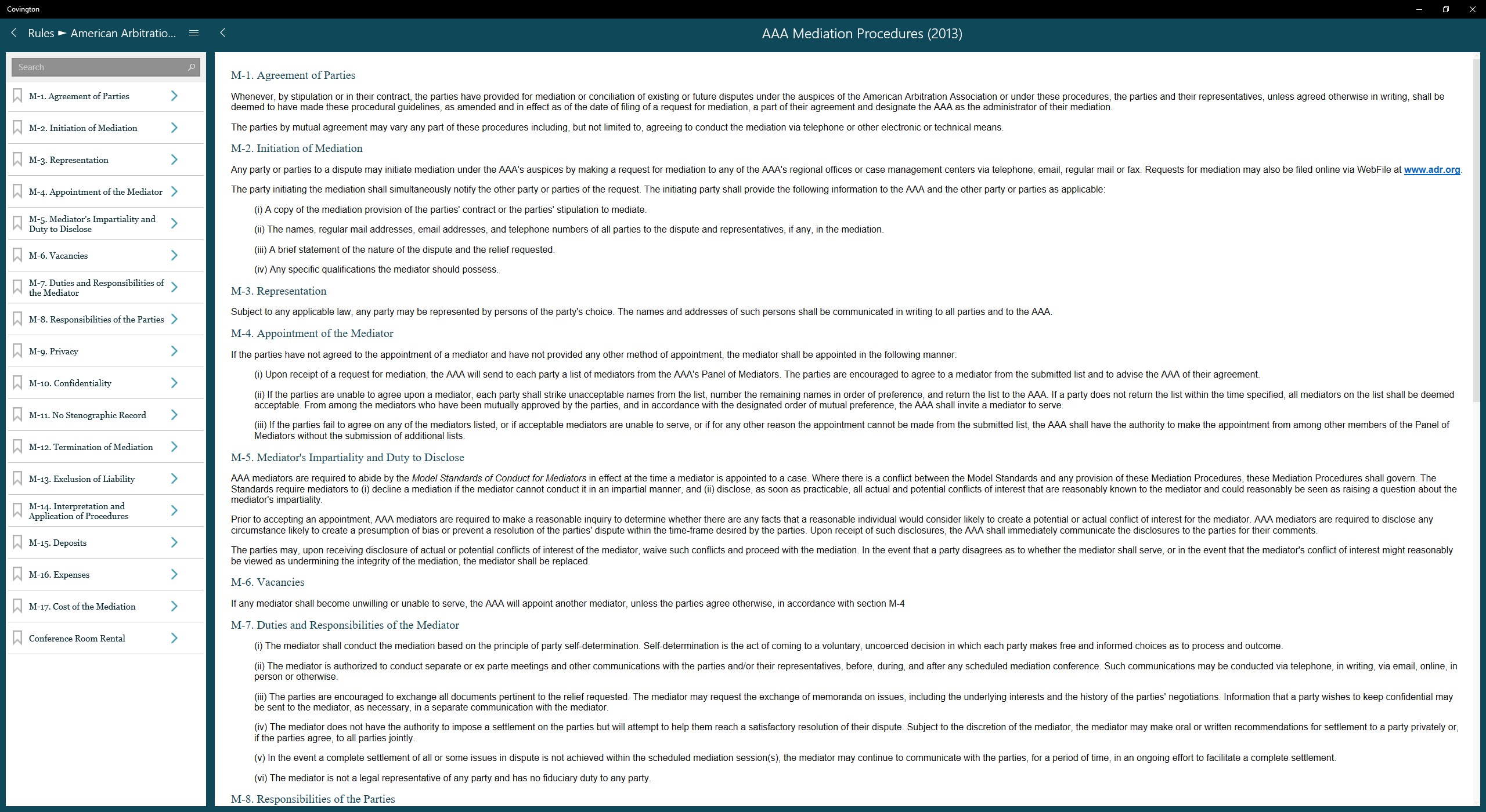 In addition to arbitration laws from countries in Africa, Asia, Europe, the Middle East, North America and South America, the app includes rules from a variety of arbitral institutions, including: AAA, Camara Lima, Camara Santiago, CCBC, CEPANI, CEDR, CIArb, CIETAC, CPR, DIAC, DIFC, DIS, HKIAC, ICC, ICDR, ICSID, KCAB, JAMS, JCAA, LCIA, LMAA, PCA, SCC, SIAC, Swiss Chambers of Commerce, TAS/CAS, VIAC and WIPO. Model clauses, commentary, guidance materials and alternative dispute resolution procedures are also provided.