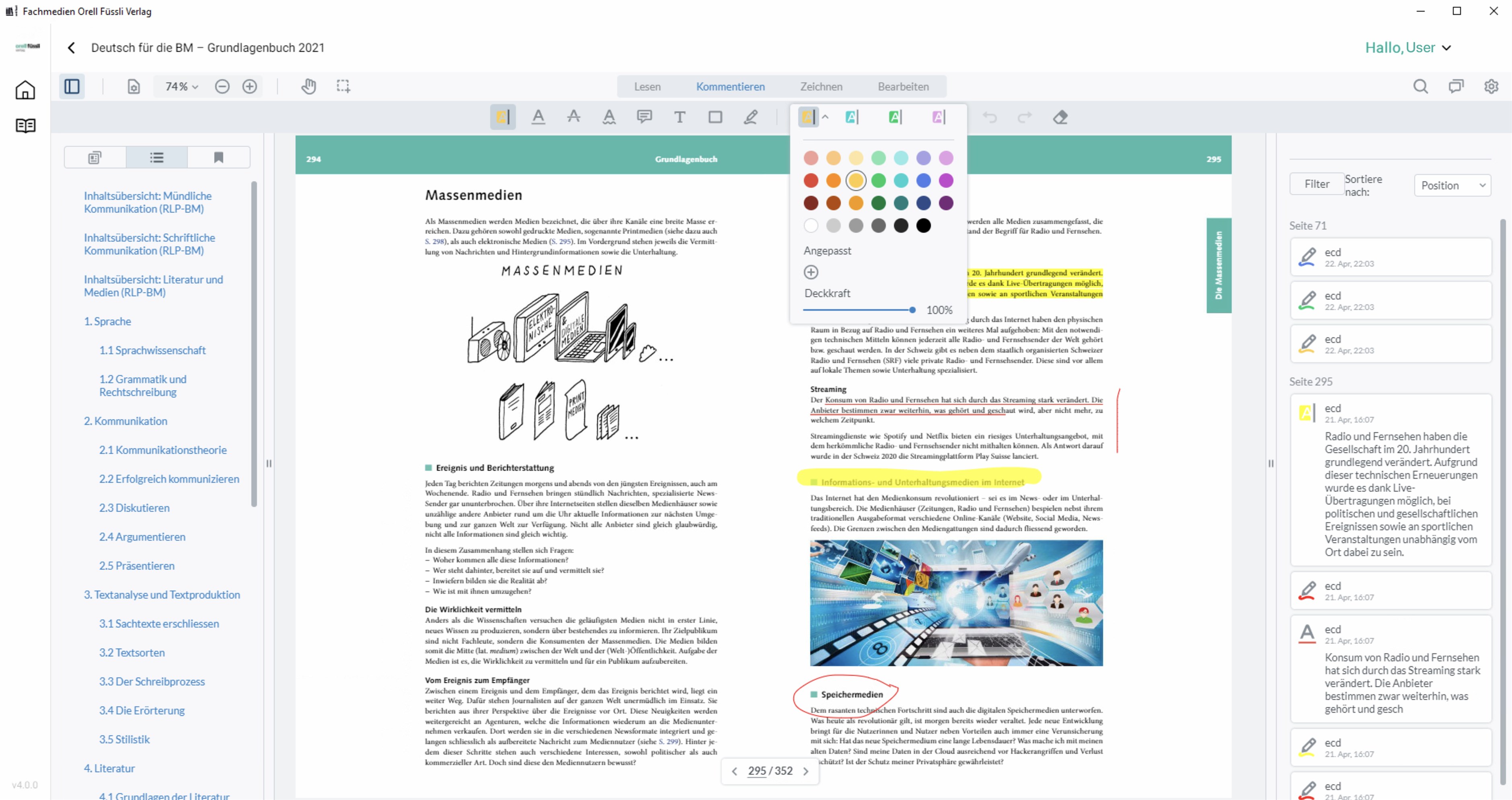 In der App «Fachmedien Orell Füssli Verlag» werden E-Books aus den Bereichen Lernmedien und Juristische Medien publiziert. Effizient kann damit im Unterricht, im Studium zu Hause oder unterwegs gelernt werden. Durch zahlreiche Verlinkungen und zusätzlichen Dokumenten zum Download wird ein attraktiver Mehrwert geboten.