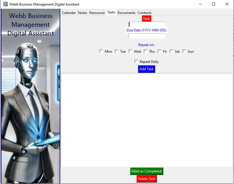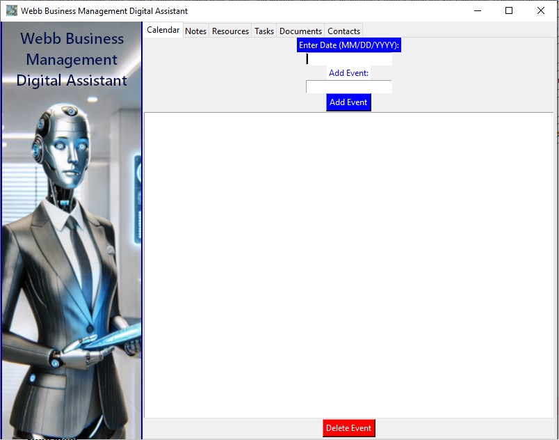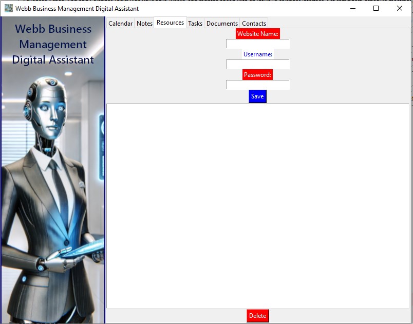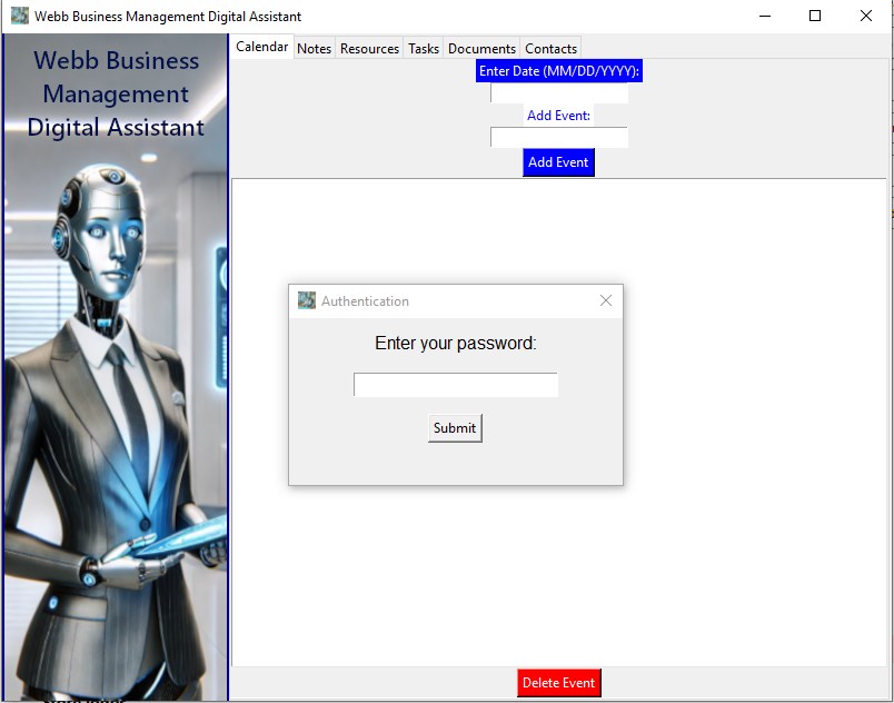 Organize, Plan, and Secure your business data with ease: Webb Business Management Digital Assistant is your comprehensive solution to managing every aspect of your business with precision and ease. From scheduling and tasks to secure document handling and website username and passwords along with contact management, this powerful tool is designed to streamline operations and boost productivity.