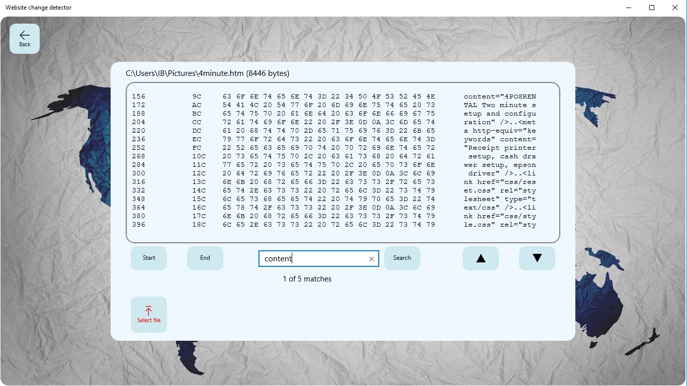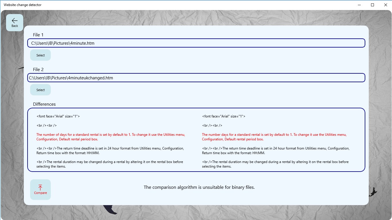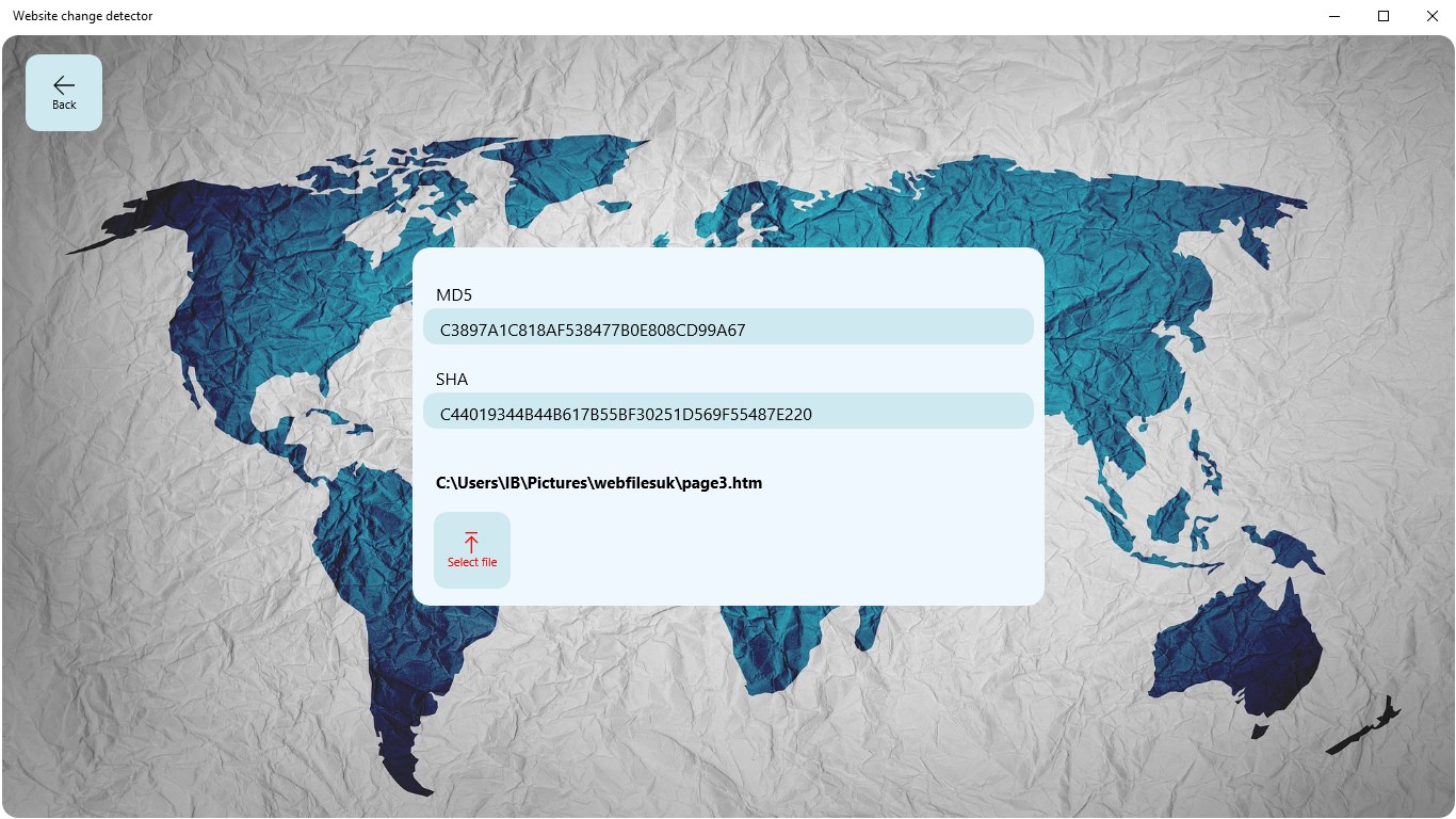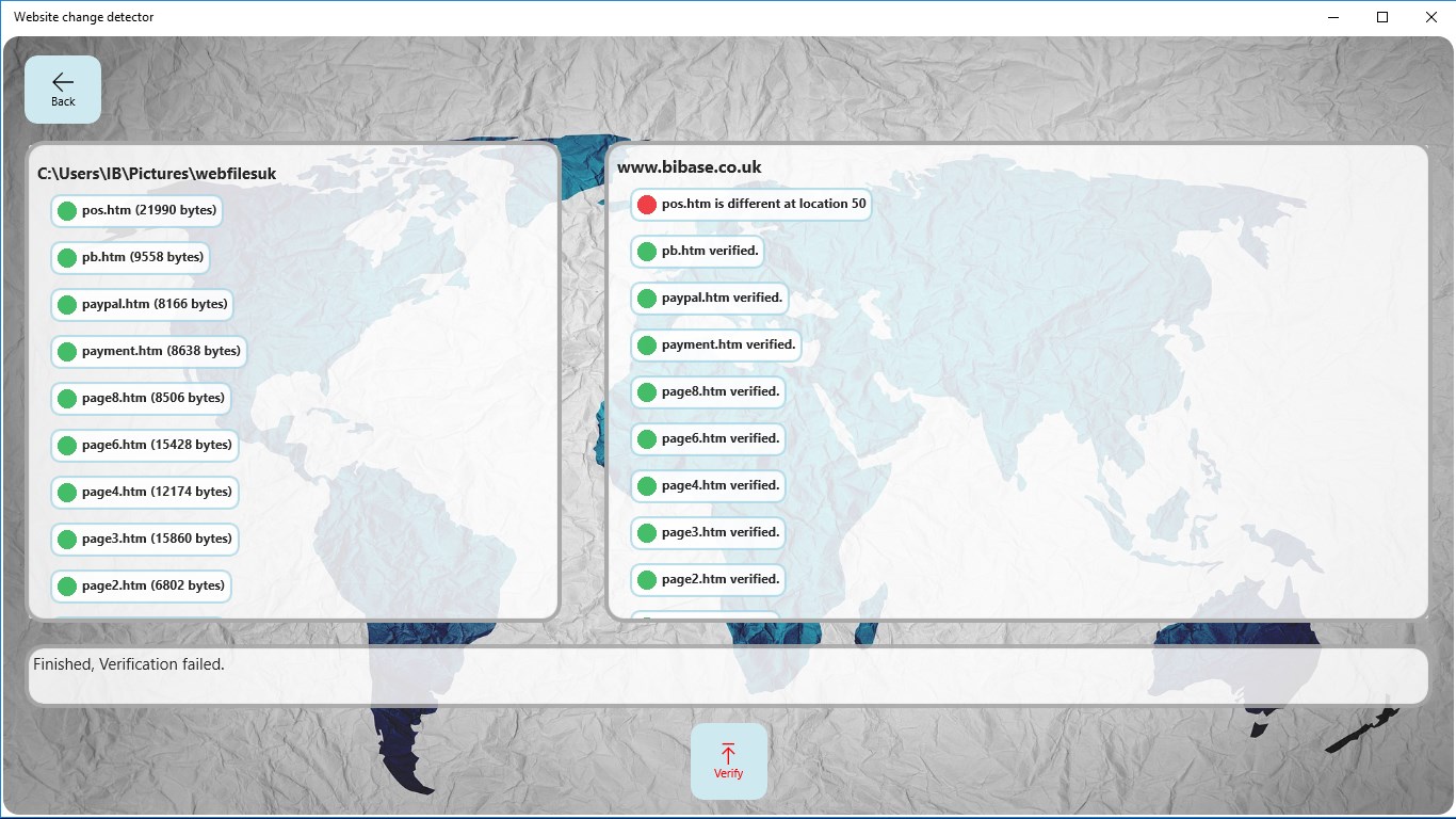 Quickly check if a website has been changed or tampered. The app compares website pages to files on a local computer.