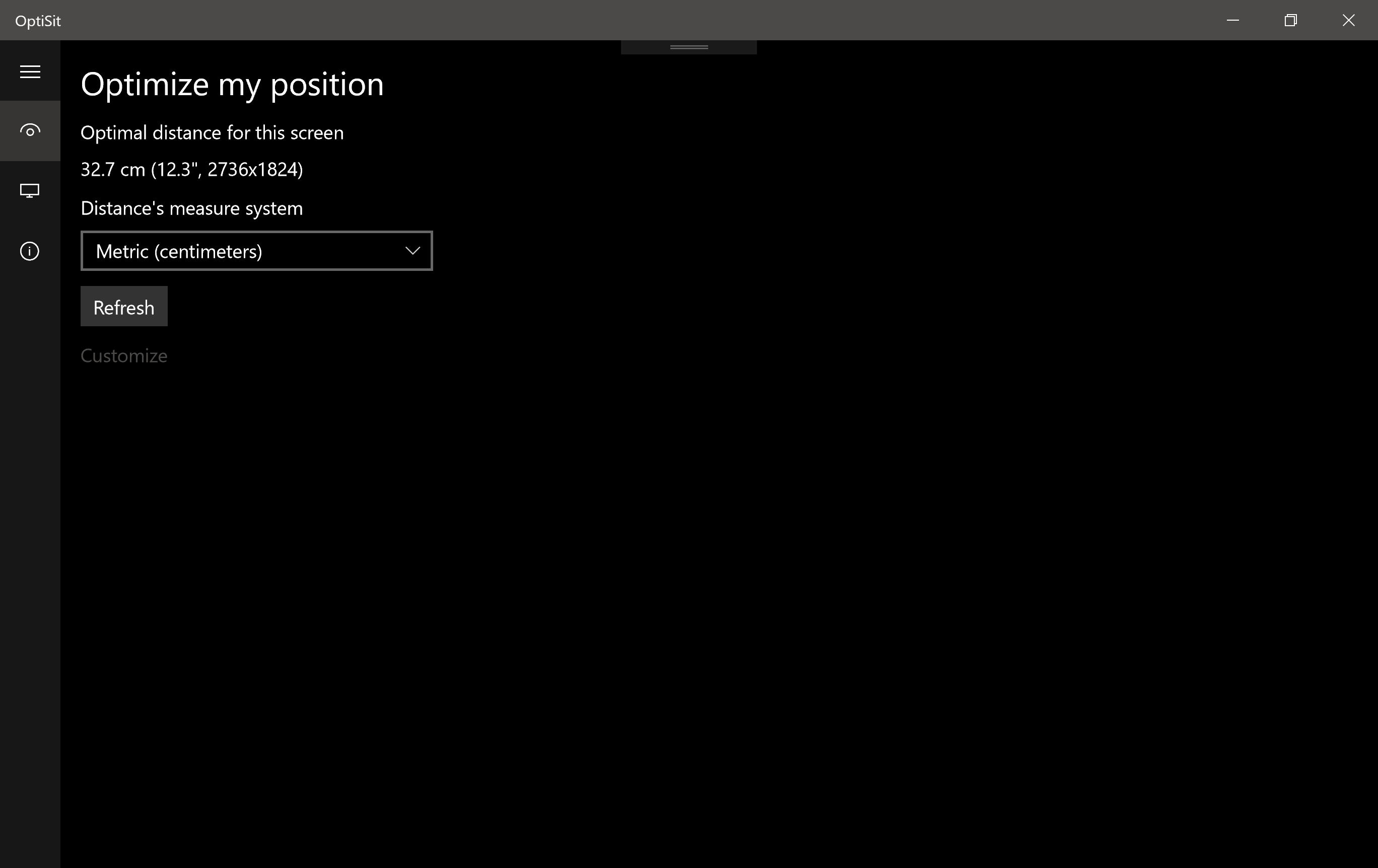 IMPORTANT : By using OptiSit™, you agree that data about screen dimensions, calculated distances and the running operating system will be anonymously collected for analytical needs. None of this information will be sold or subjected to targeted ads.