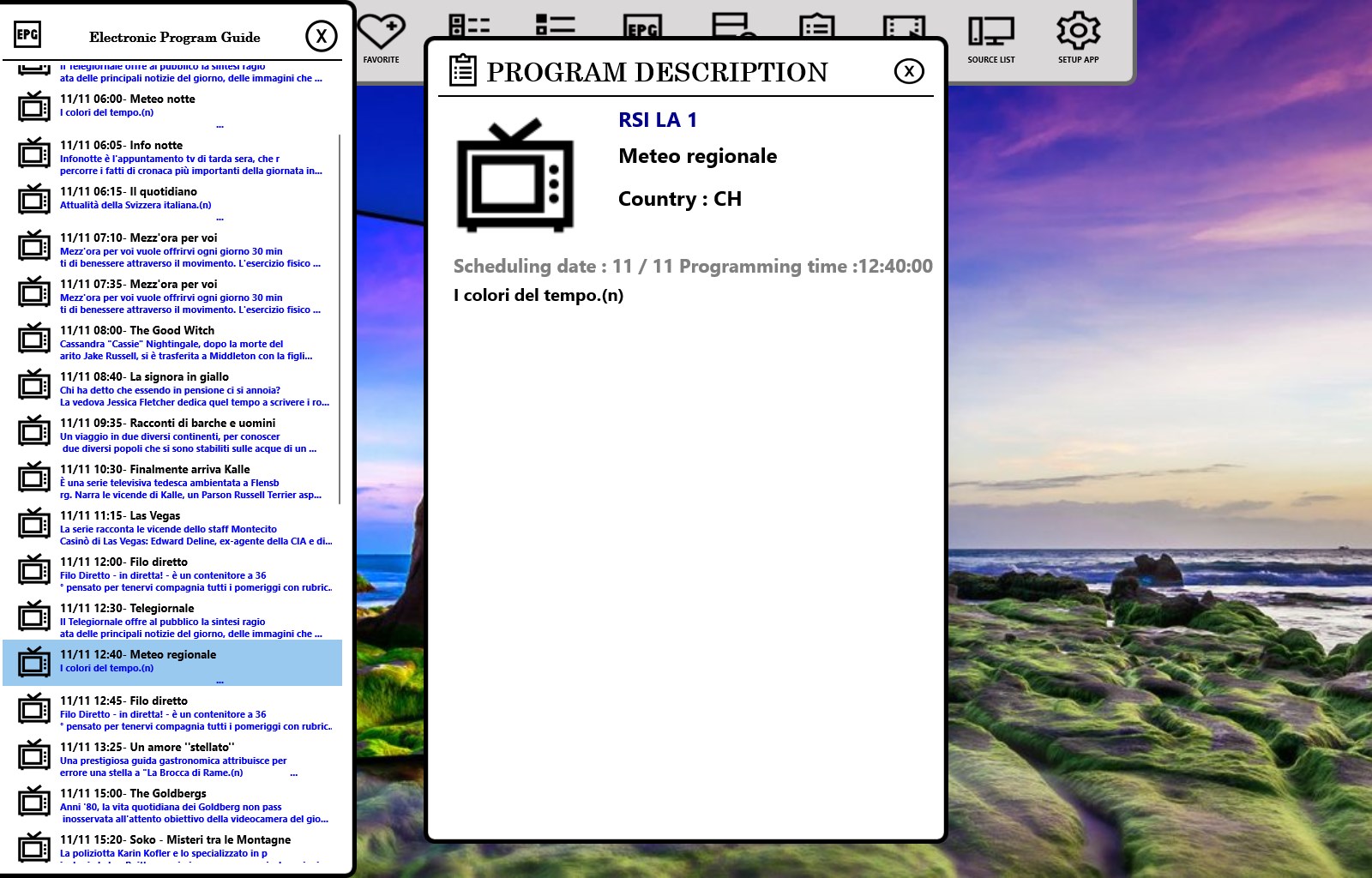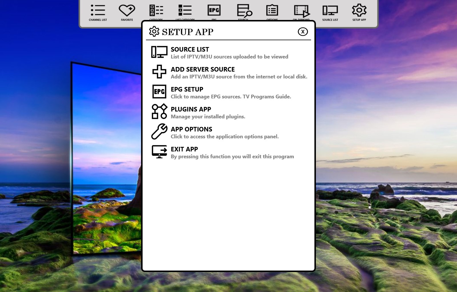 The peculiarities are the extreme flexibility that with its Plug-Ins allow the extension of the program according to your needs leaving as much space as possible to the mammoth management of EPG (Electronic Guide to Television Programs) in fact there is basic management of EPG allowing you to use those already supplied with the app.