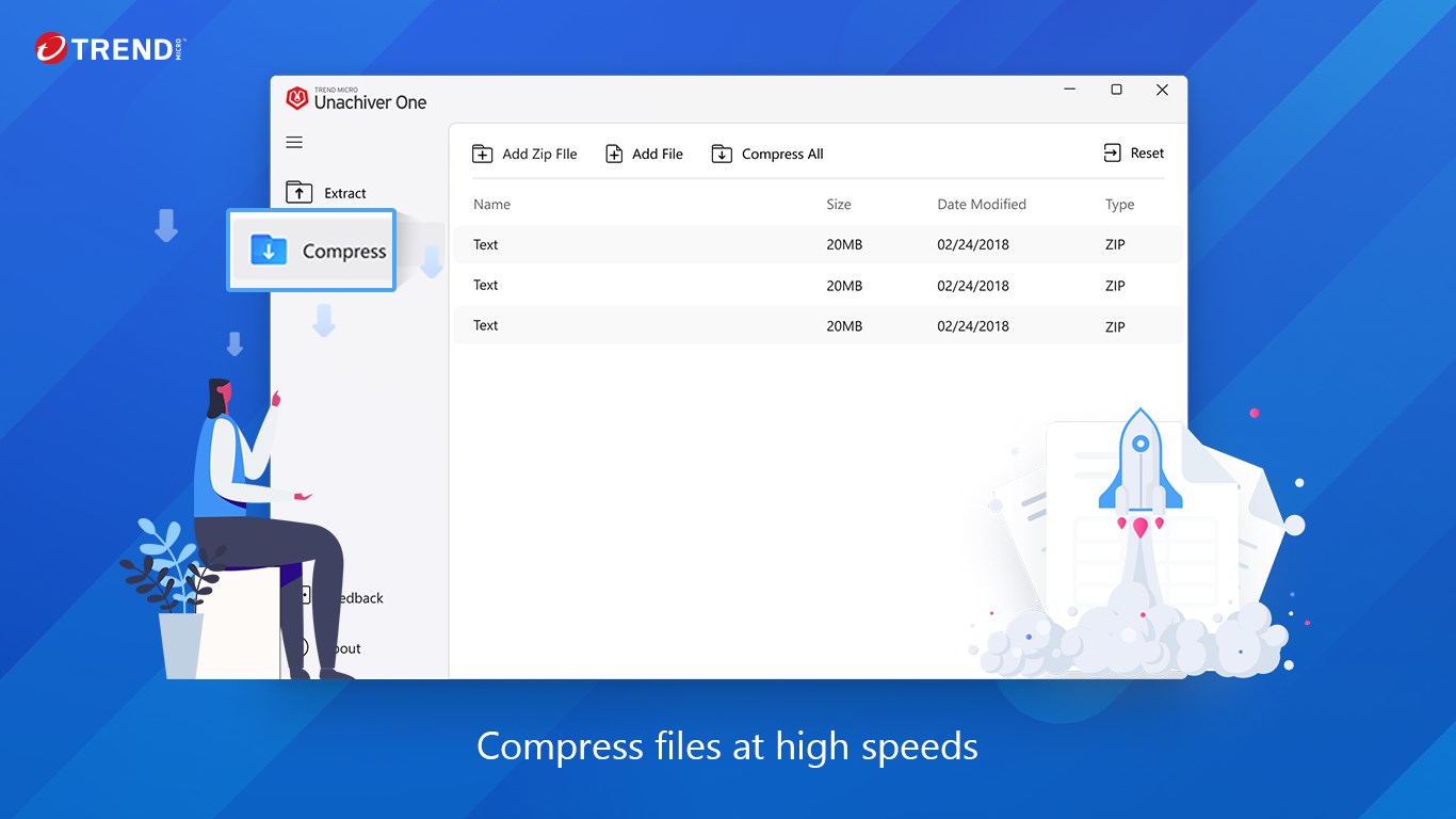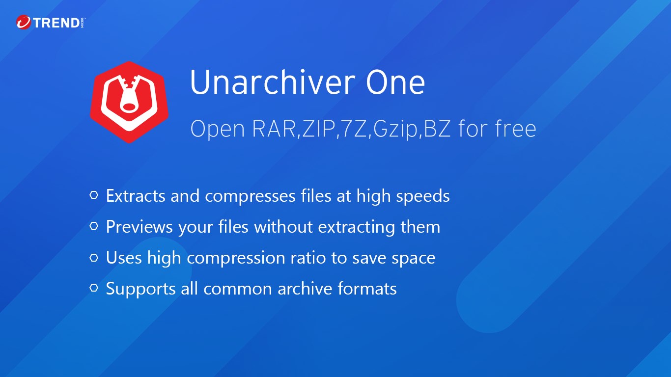 Extract and compress files at high speedsExtract archive files to your preferred location or folderPreview your files without extracting themDrag and drop files to the Unarchiver One console to browse contents easilyHigh compression ratio to save space