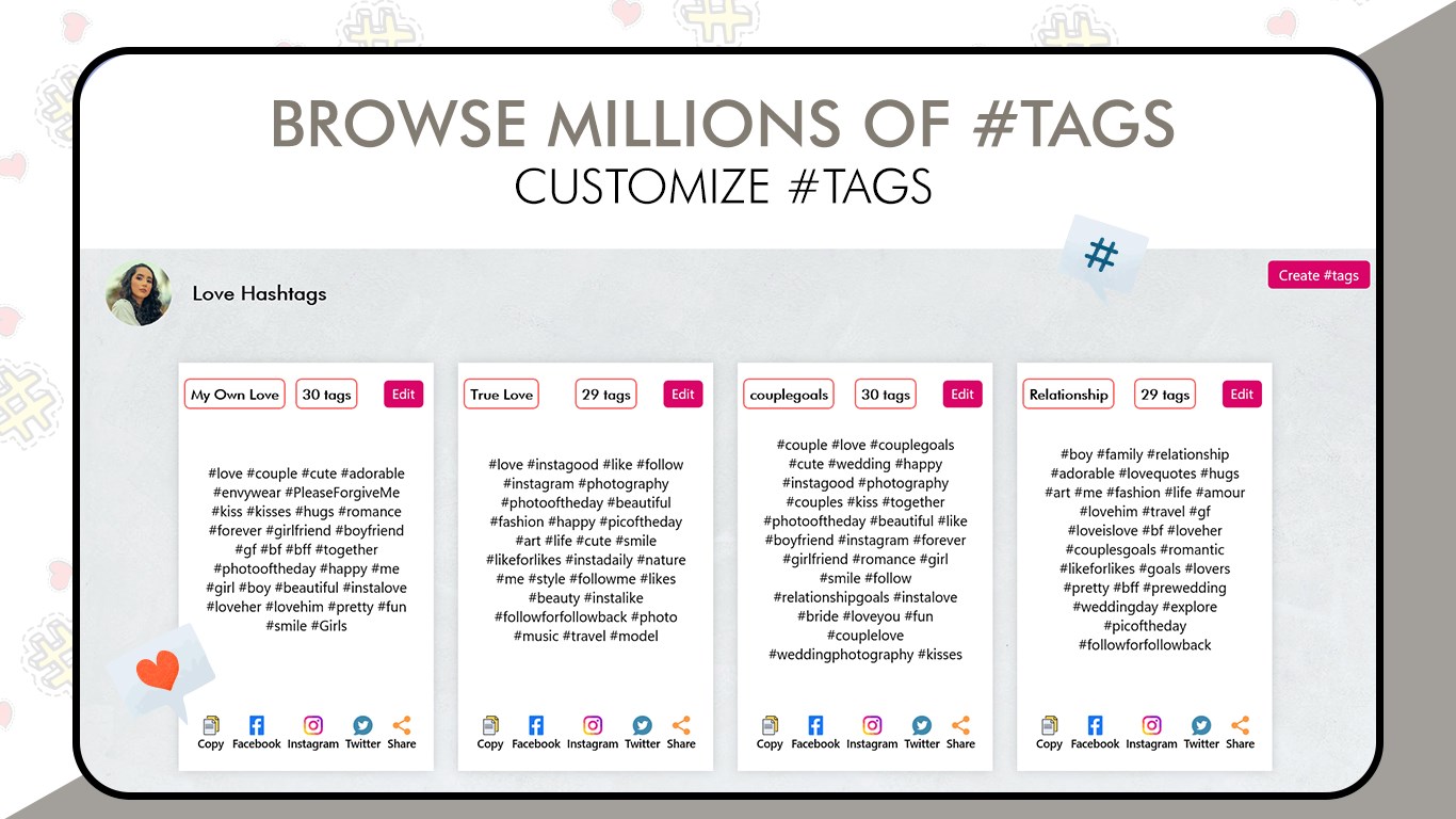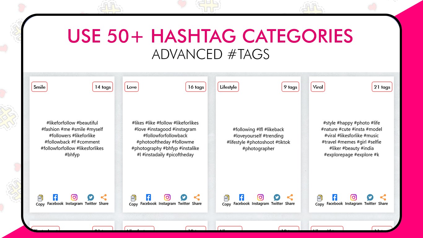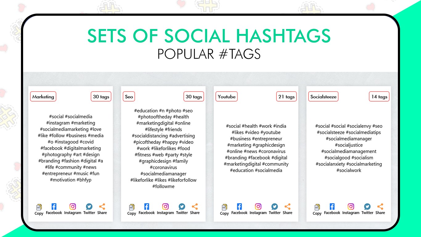 Copy whole set of tags in one click and paste it wherever you want to share or directly paste it in your social media posts.