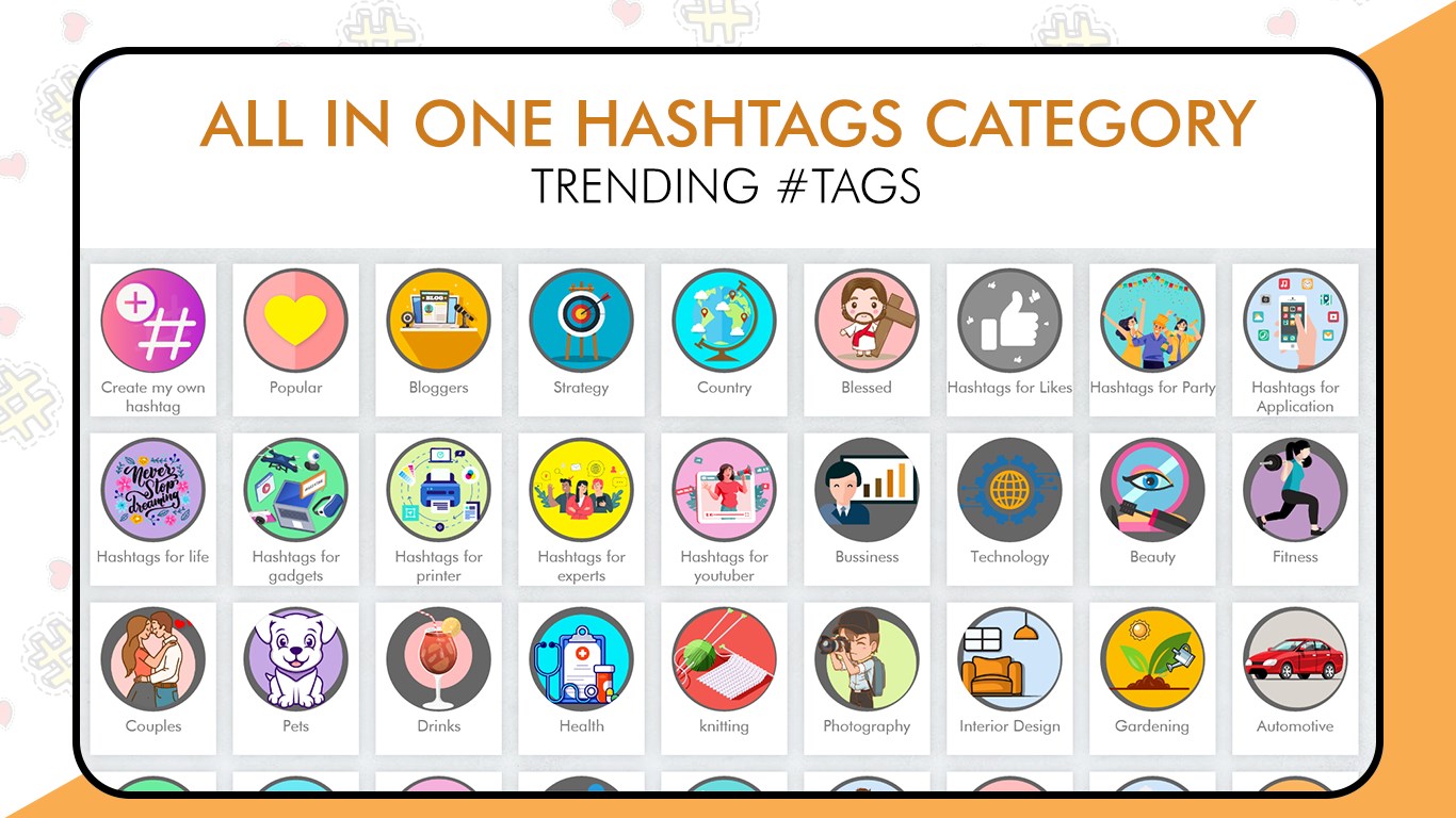 List of categories includes tags viz. Popular, family, food, social, celebrities, fashion, follows and likes, holiday, travel, nature, entertainment, fashion, weather, animals, etc. These categories are further divided in sub-categories, each of which contains a whole set of 25+ tags to instant copy-paste on your social media and get amazing caption for your posts.