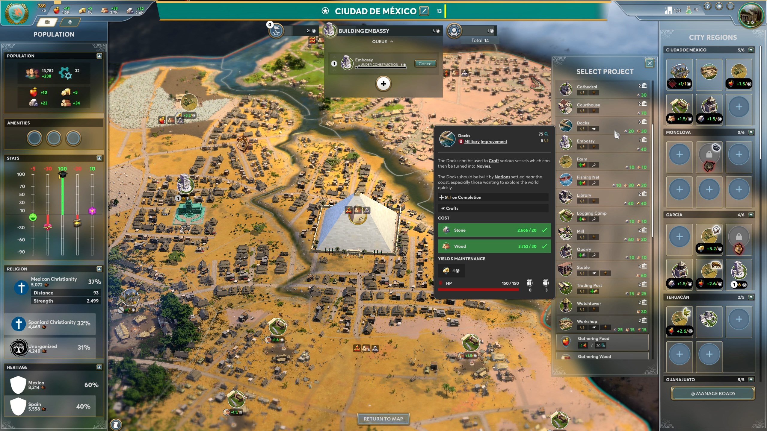 Serve your people and grow your prestige with numerous Improvements, from forges to libraries, citadels to cathedrals, public parks to industrial factories - as well as a global variety of the greatest architectural Triumphs ever conceived and built by human hands.