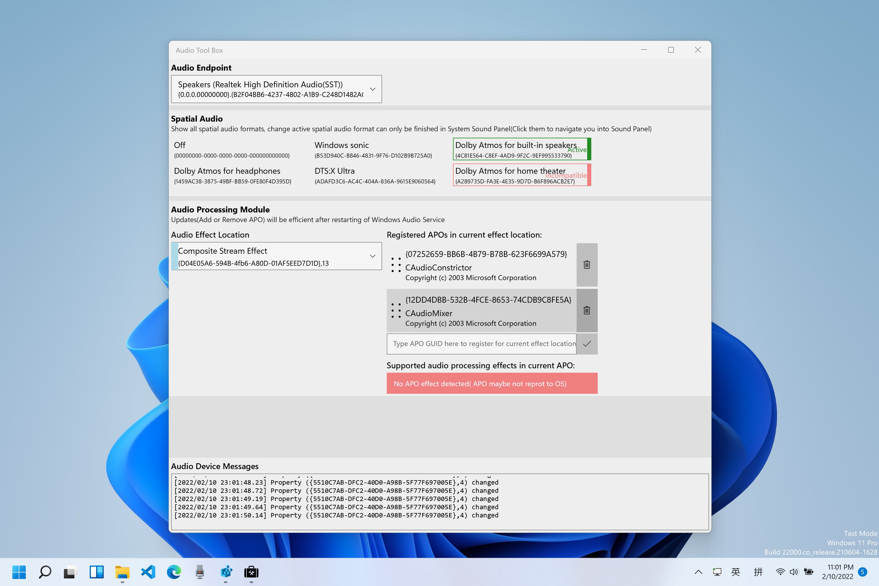 Windows AudioSpatial SoundAPOToolbox
