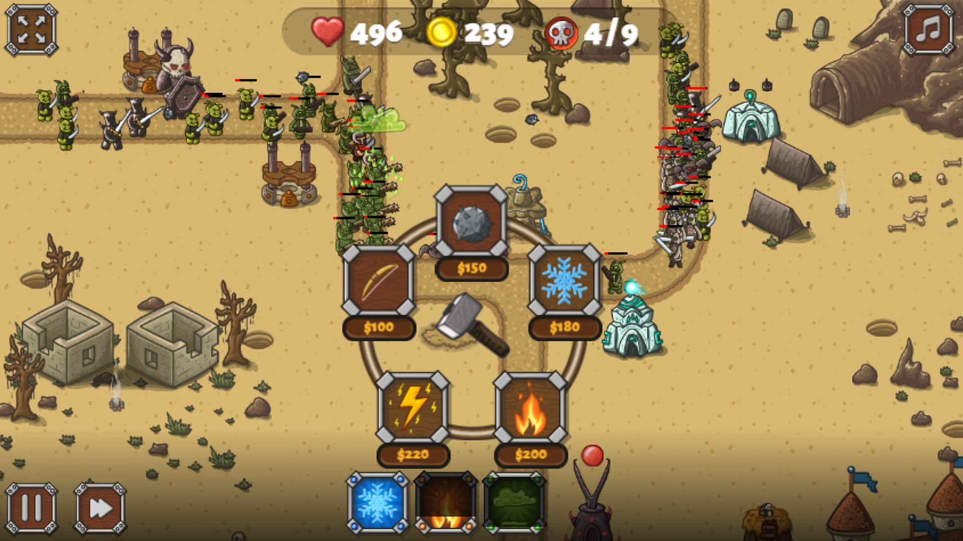 A horde of horrible monsters is attacking your kingdom, build your towers fast and survive all the waves. If arrows or stones are not enough, use elements to your advantage and slay them all.