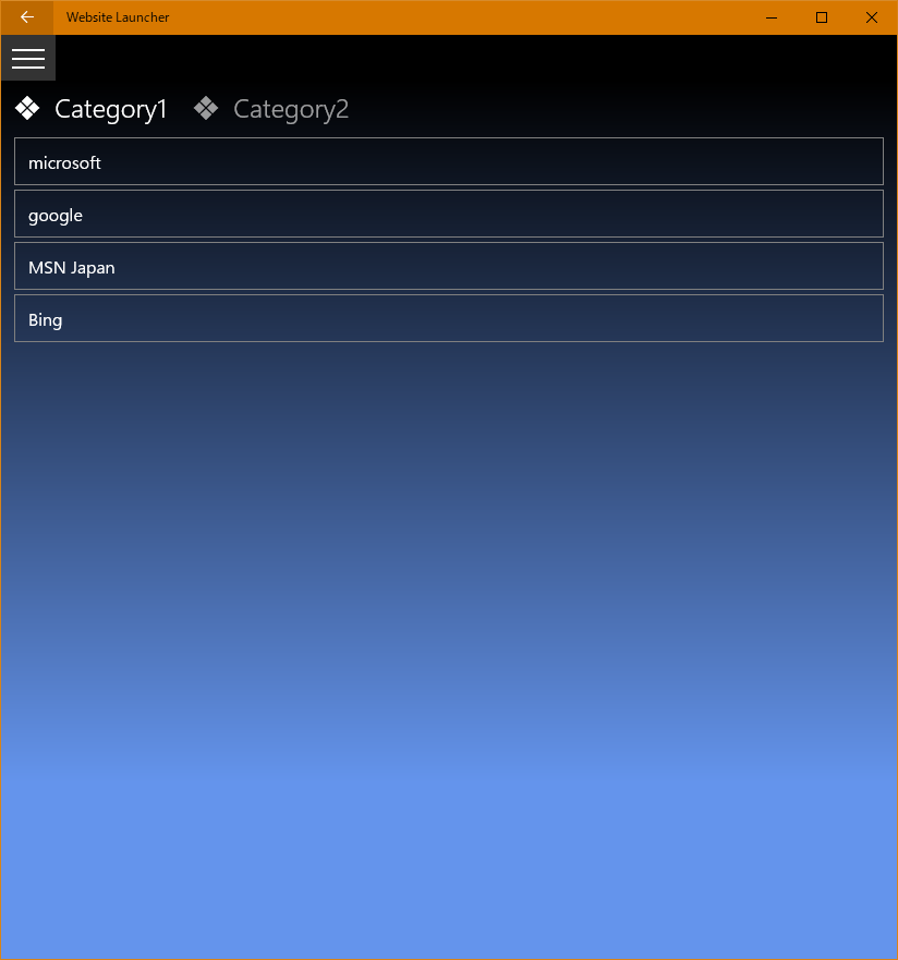 Website Launcher displays favorites from the pre-registered favorites list,