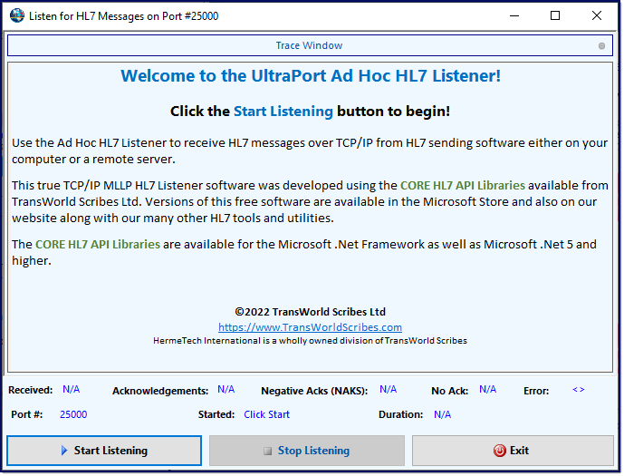 If you prefer downloading directly from the web, you can use the official Microsoft website.Step 1: Visit the UltraPort HL7 Ad Hoc Listener Page