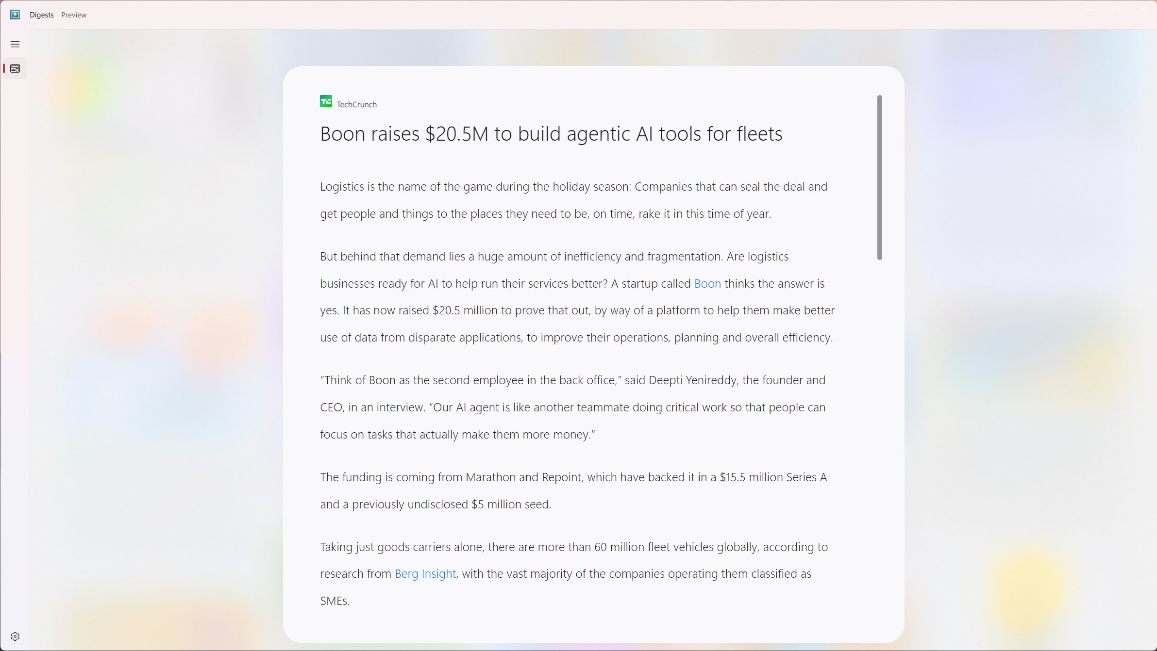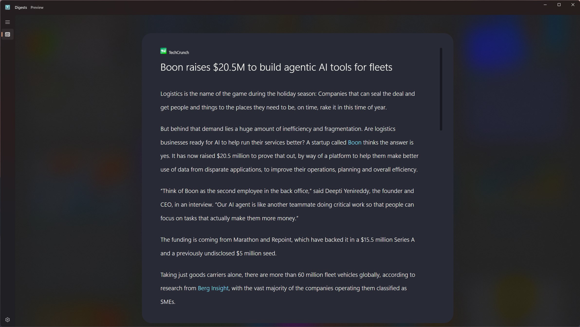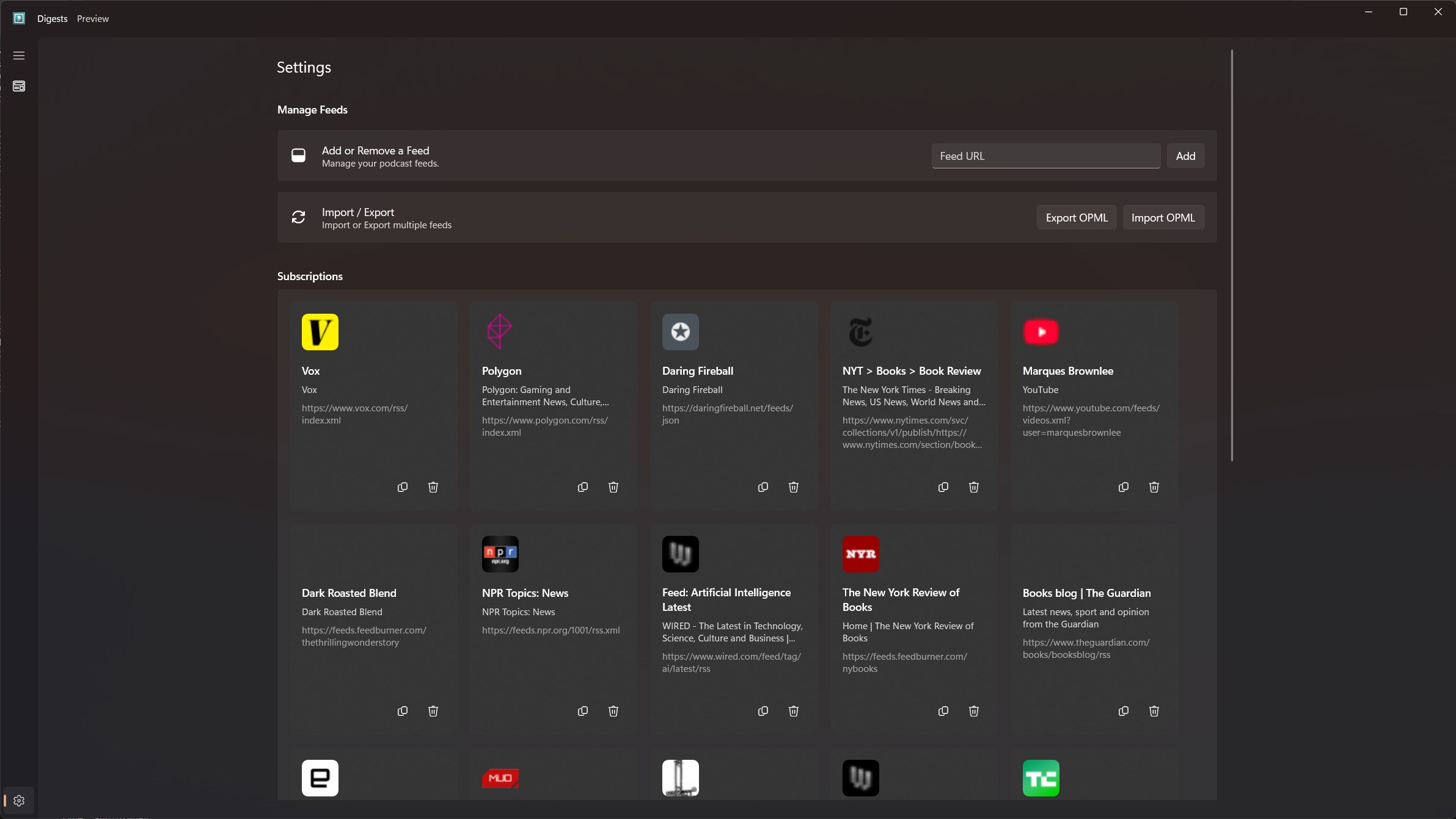 Digests in Preview so expect some bugs and oddities but it also means that it is getting frequent updates and features. Head over to our github to log any issues or suggest ideas. Digest may lack some advanced features but the core RSS feed and Podcast experience is available now. More features and optimizations will be added in future updates.