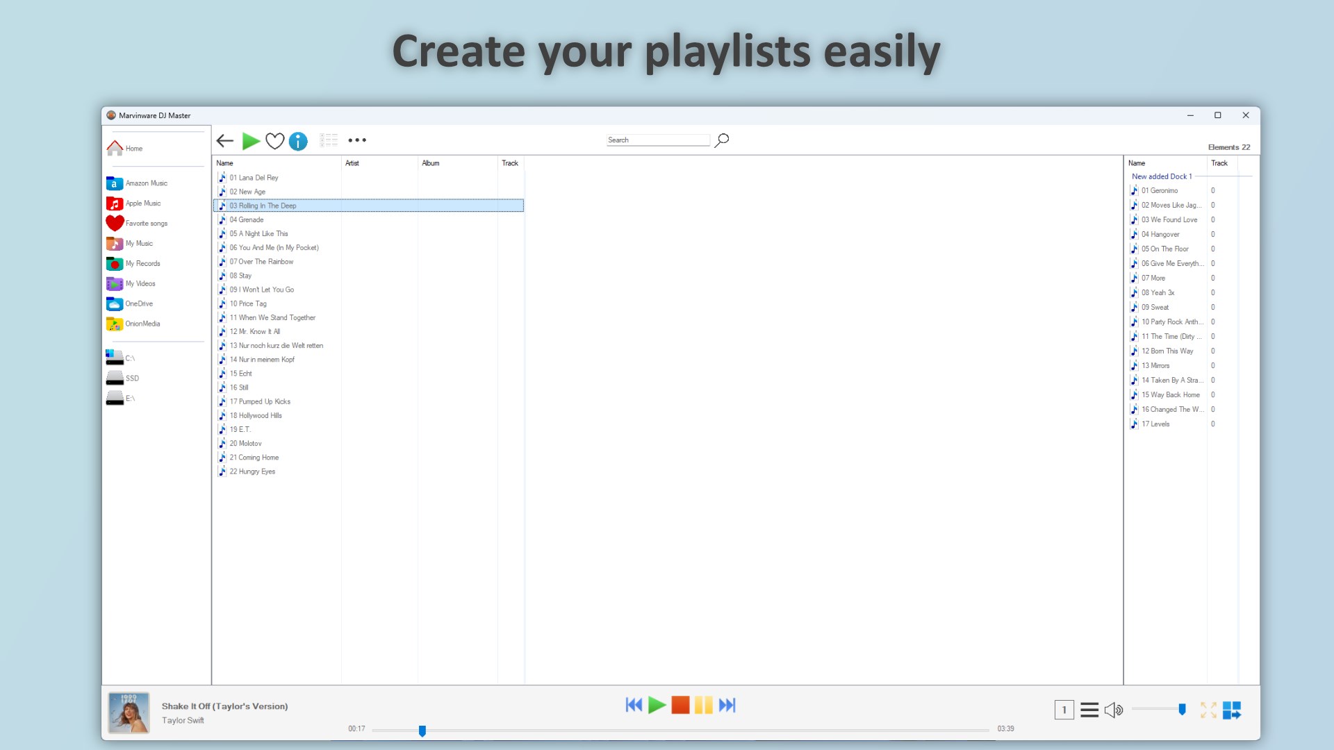 DJ Master supports native music files as well as local services like Apple Music, Amazon Music, and OnionMedia, so you can always access your favorite tunes. Print playlists directly from the software and keep track of your music collection with the easy-to-use file explorer.