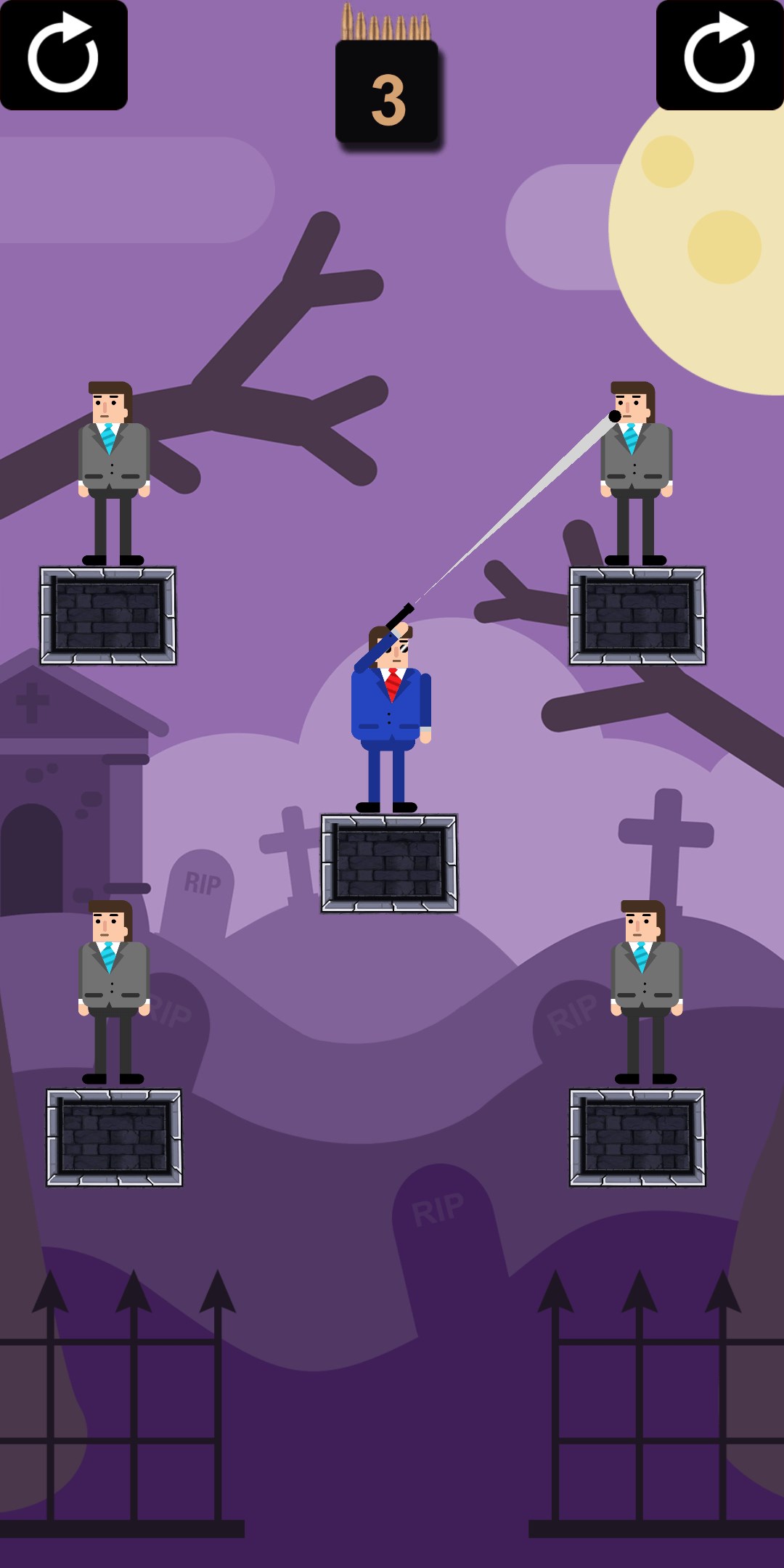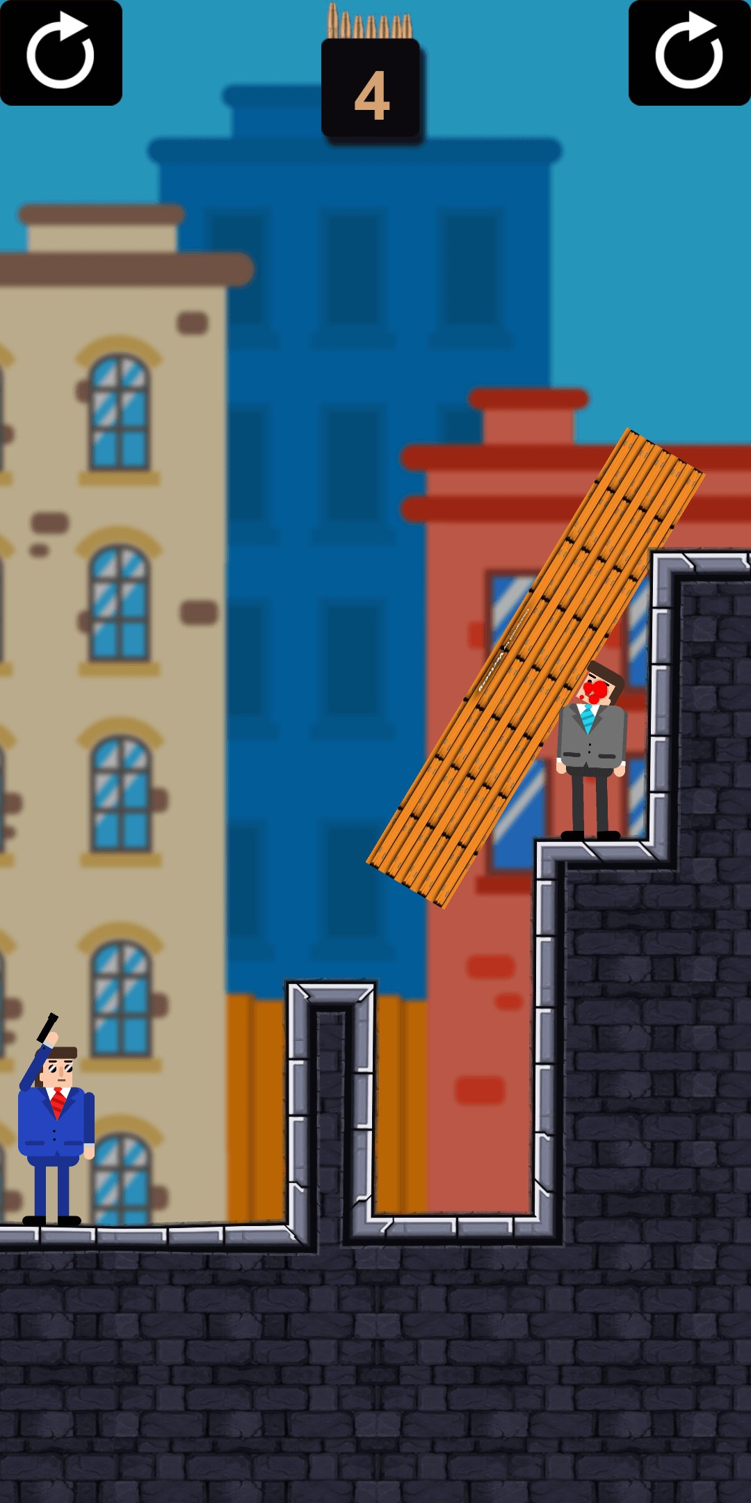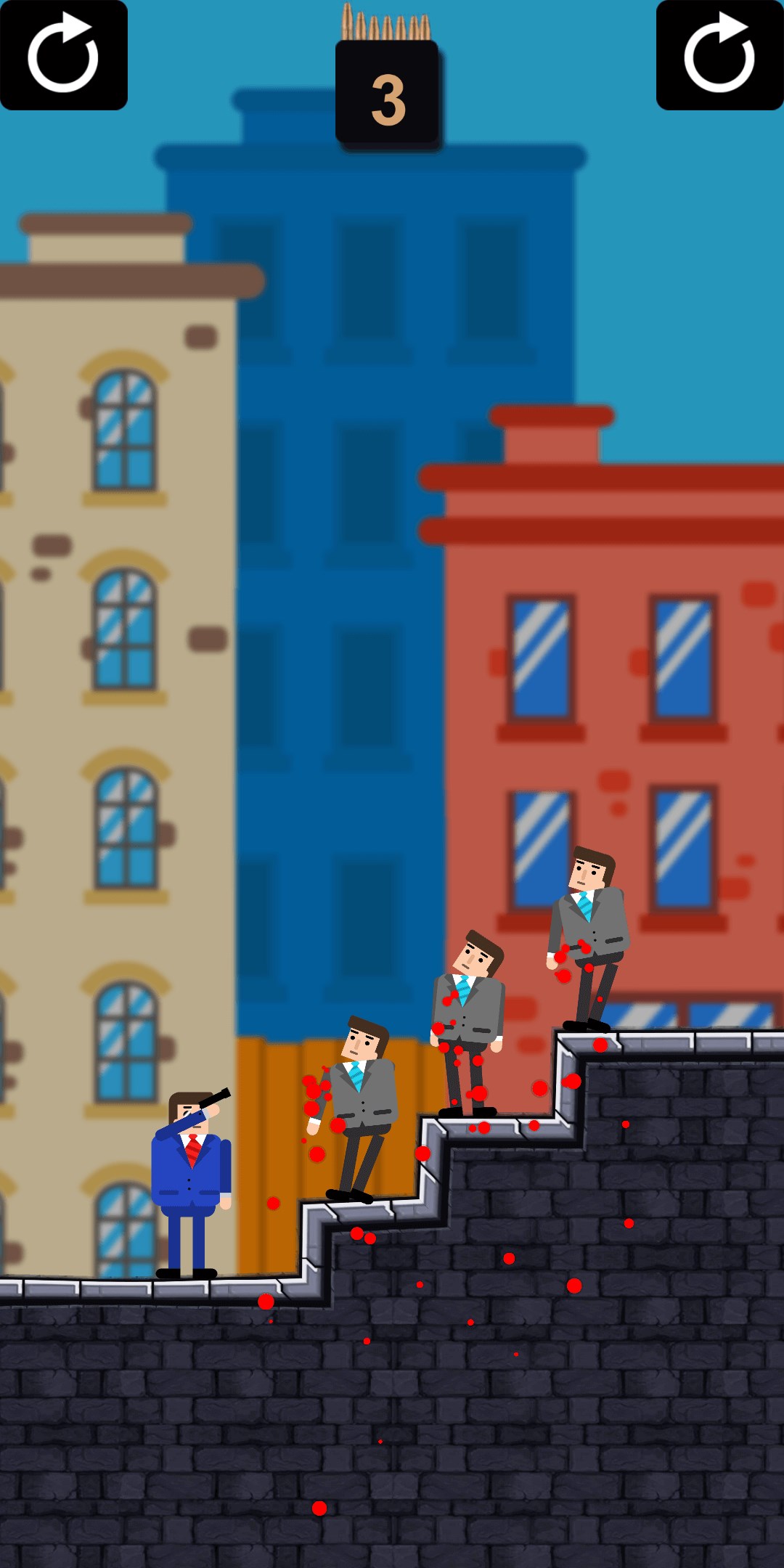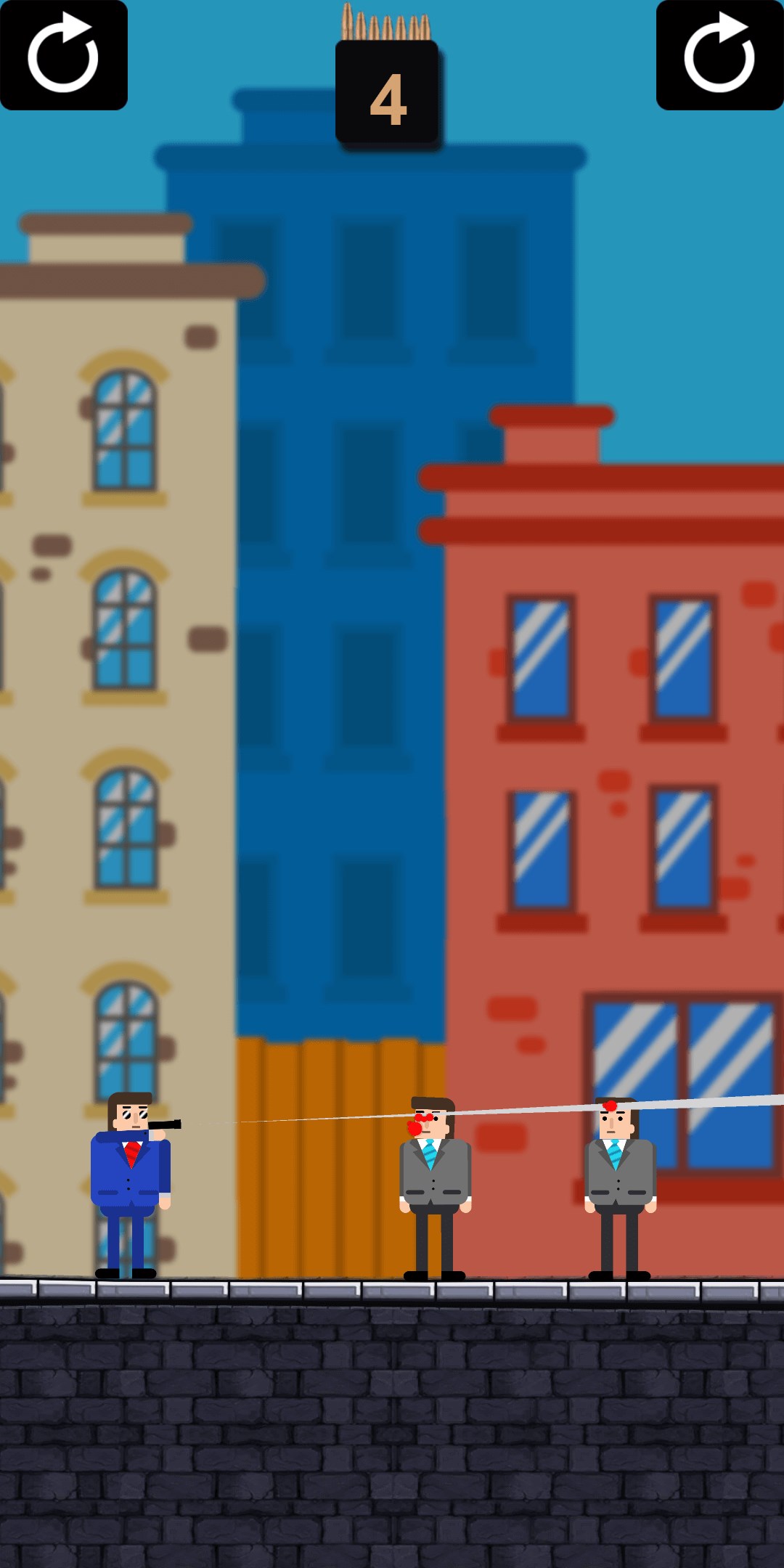 Use your brain in this unique puzzle game. You will need precise aim and laser focus to take down enemies, ninjas, and many other bad guys you will encounter in the world! Travel to new lands, save hostages, and use unique weapons like grenade launchers to combat your foes. Start your adventure now! The one thing you have to ask yourself is: can you do it in one shot?